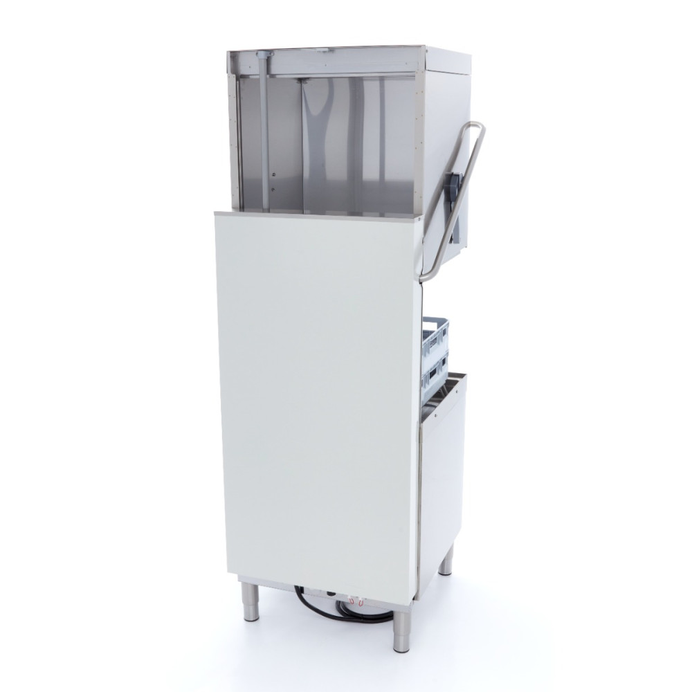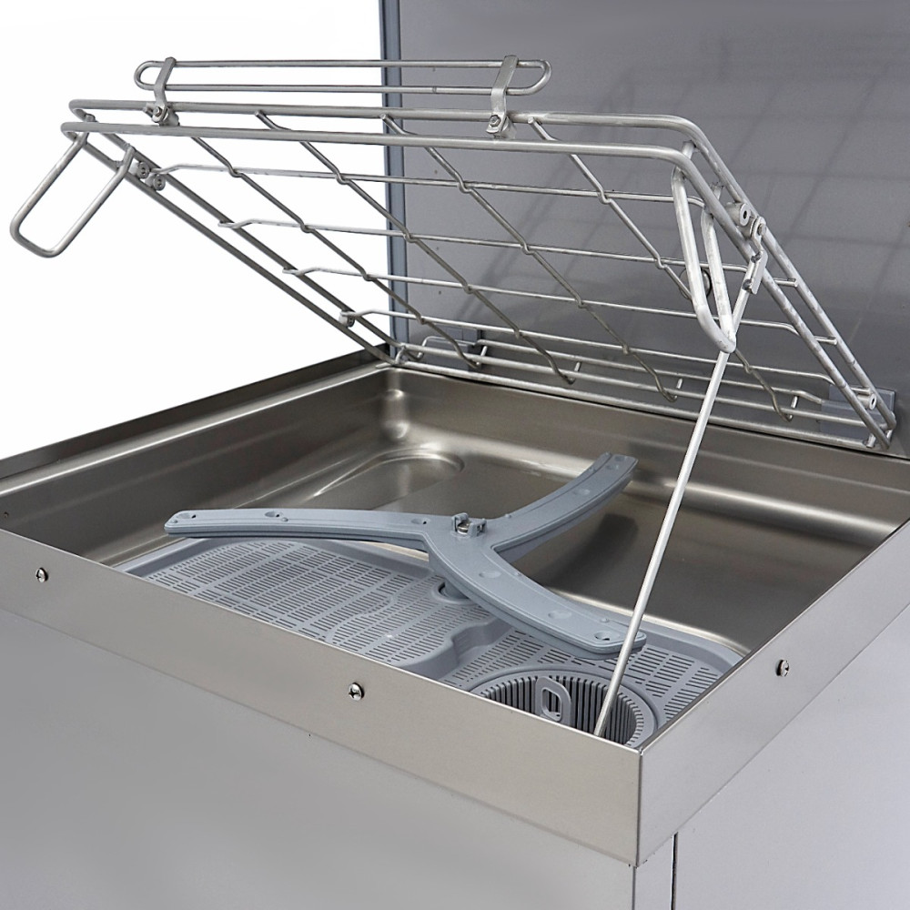 Ve velkých stravovacích zařízeních, která pracují s velkým množstvím špinavého nádobí, je tato průchozí myčka velkým přínosem. Koše můžete projít rychle, takže manipulace s nádobím je velmi efektivní. Tato profesionální myčka má tři mycí programy: 60, 120 a 150 sekund. Teplota mytí je 60 °C a cyklus oplachování 80 °C, díky čemuž vše rychleji schne. Je to také velmi tichá myčka, jejíž provozní hlučnost je nižší než 65 dB. Tato myčka nádobí spotřebuje pouze 2,4 l vody na jeden cyklus. Má ovládací panel s krytím IPX4, takže se voda nedostane za snadno ovladatelná tlačítka. Obsahuje čtyři tlačítka: tlačítko zapnutí/vypnutí, tlačítko pro spuštění/zastavení mycího cyklu, tlačítko pro nastavení mycího programu a tlačítko pro spuštění vypouštěcího čerpadla. Tato myčka je rovněž vybavena ukazateli teploty a oplachu.