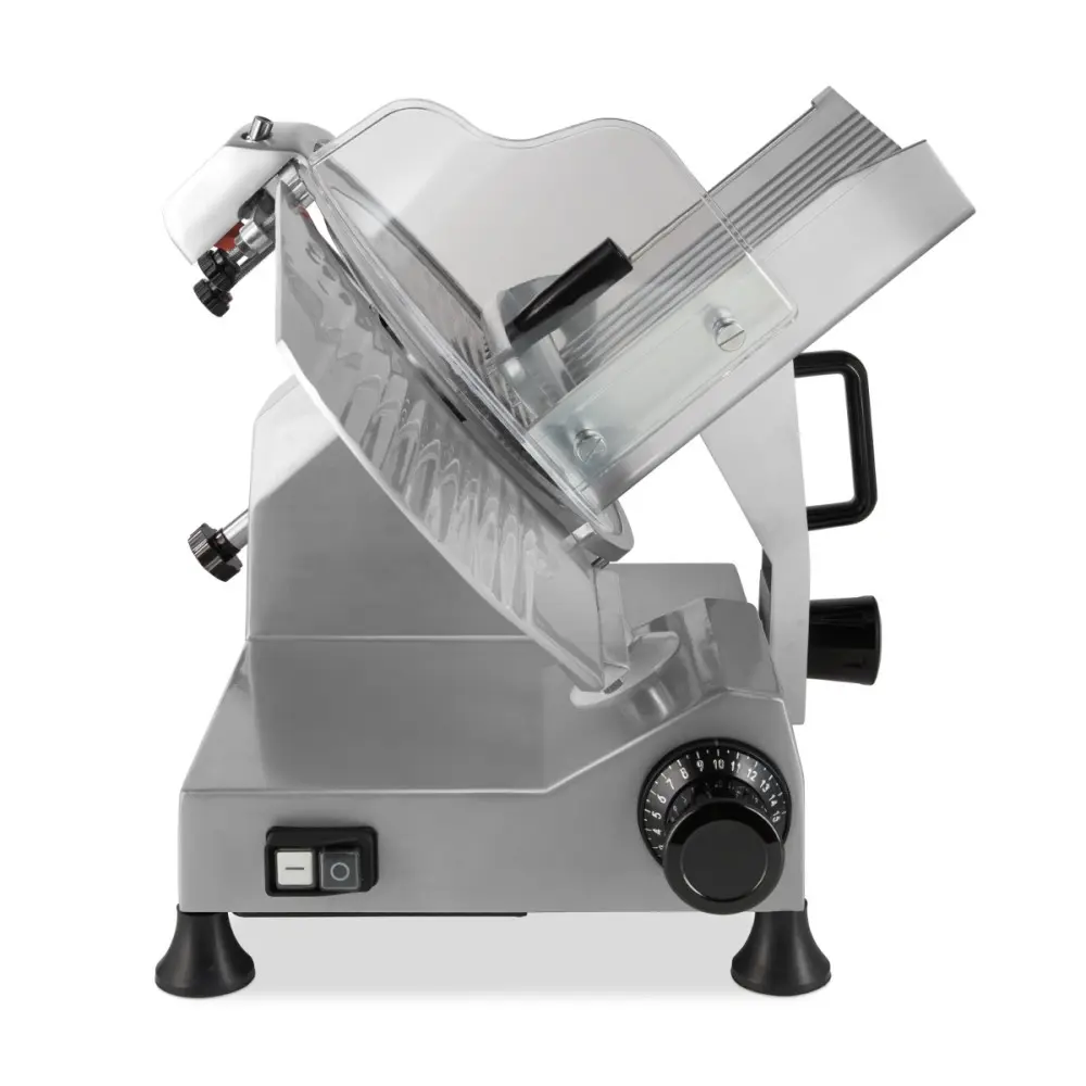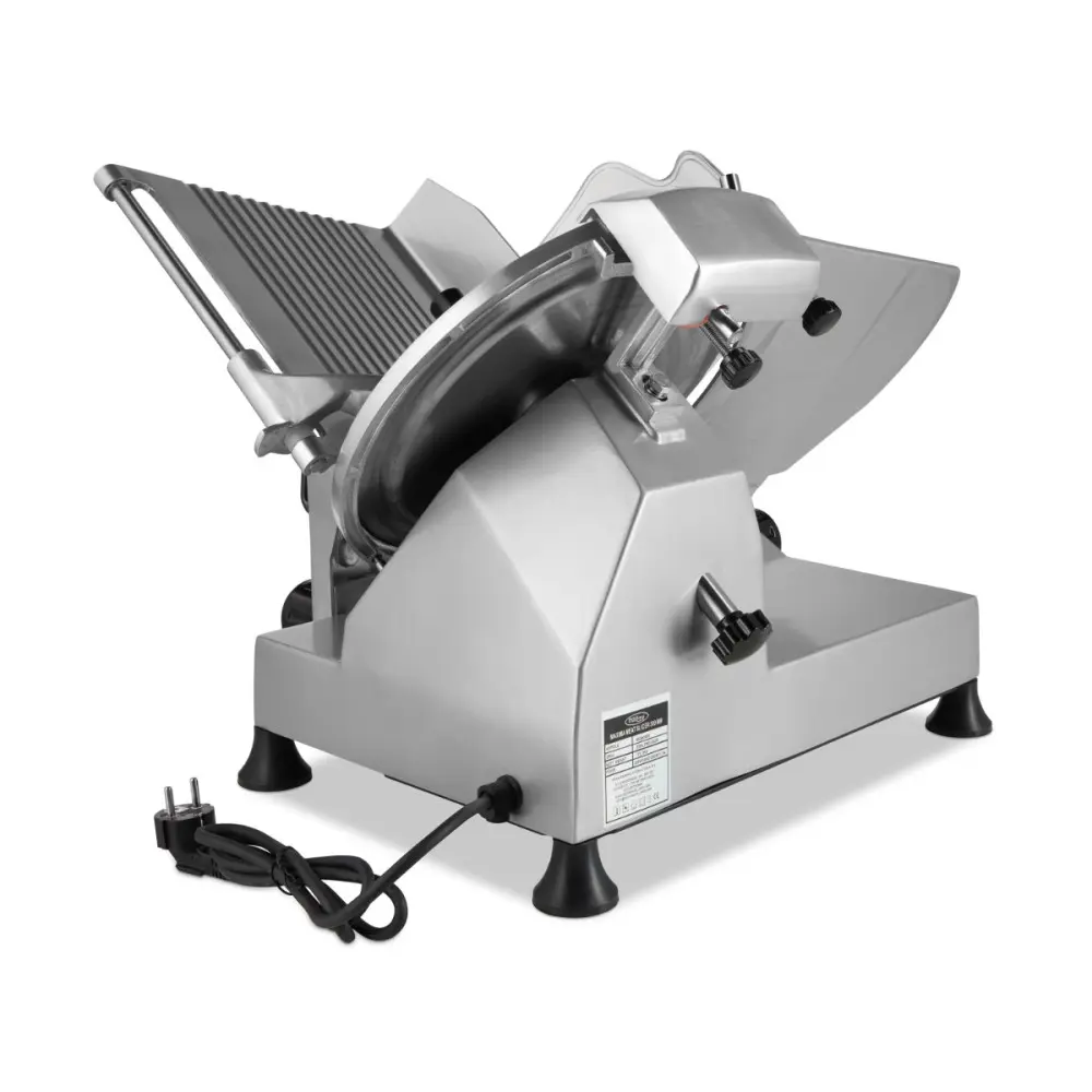 Tento profesionální kráječ na maso je vyroben z hliníku a tvrzené nerezové oceli. Nůž má průměr 30 cm a snadno krájí tenké plátky masa, sýra, chleba a zeleniny. Díky své uživatelské přívětivosti a bezpečnosti je cenným doplňkem každé gastronomické kuchyně.