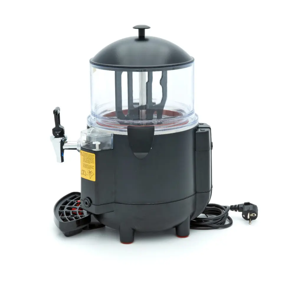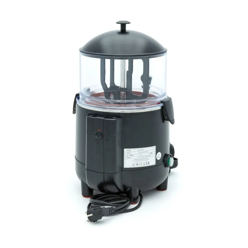 S tímto dávkovačem černé čokolády snadno vydáte 5 litrů horké čokolády. Má také systém ohřevu bain marie, který zajišťuje, že se čokoládové mléko ohřívá postupně a nepřipaluje se. Díky kontinuálnímu rotačnímu míchacímu mechanismu je zabráněno tvorbě sraženin a ucpávání výpustného kohoutku.