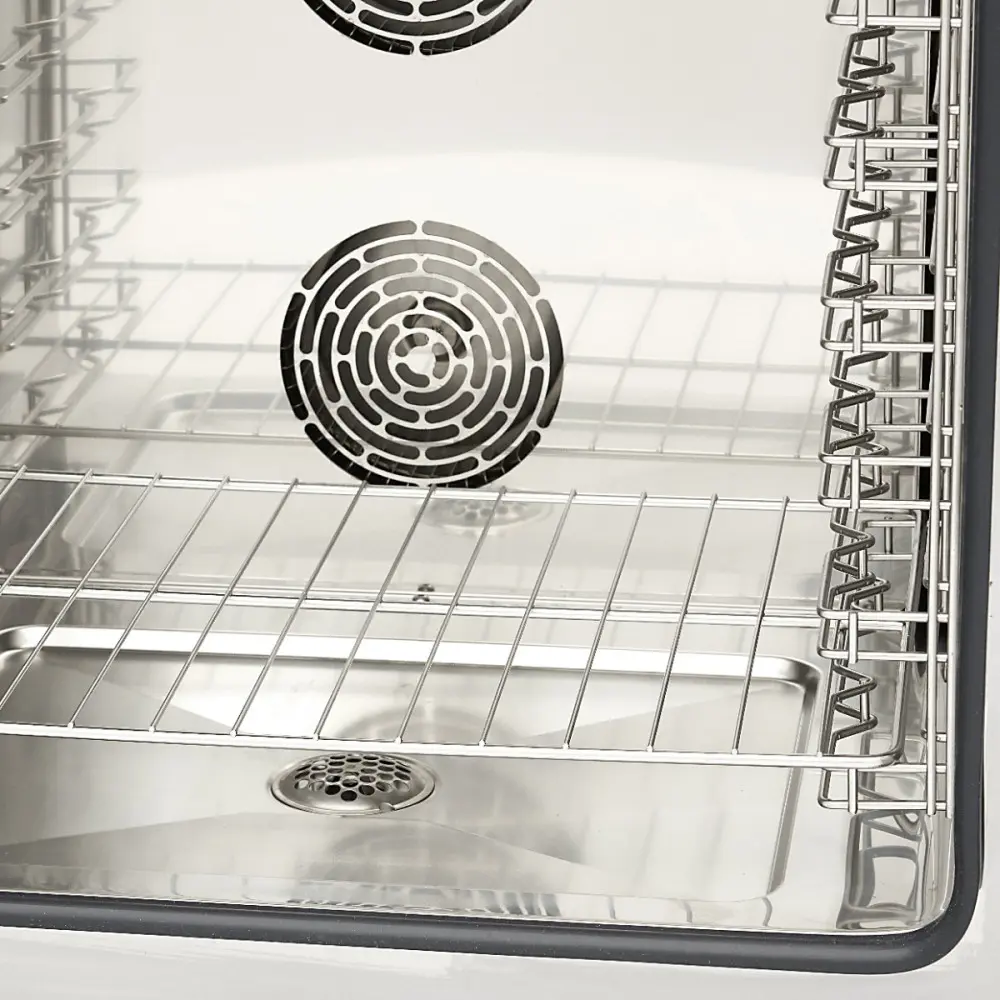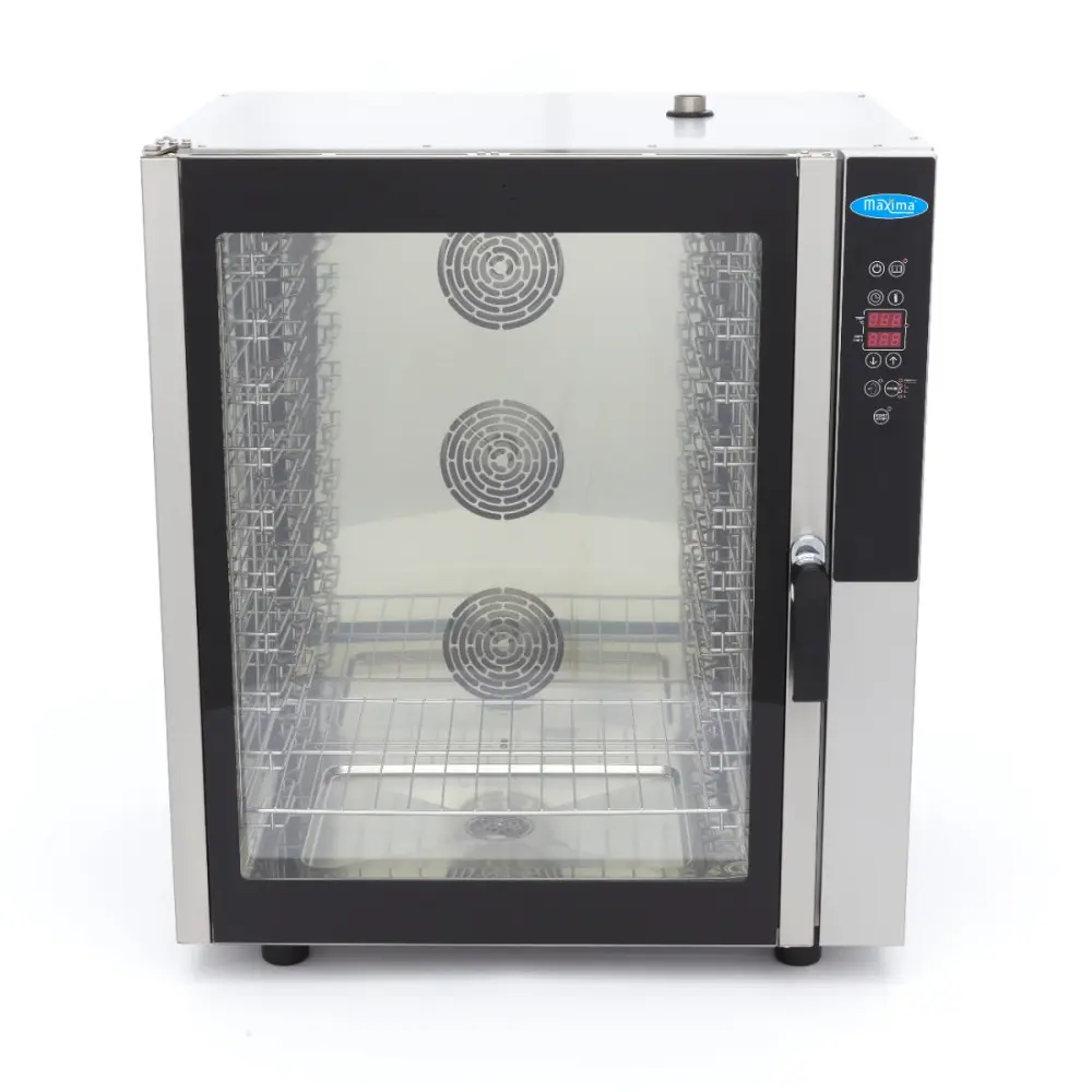 S tímto digitálním modelem kombinované parní trouby můžete vařit maso, ryby nebo zeleninu v páře a zachovat vitamíny, chuť a barvu déle než při jiných způsobech vaření. Vaření v páře také zabraňuje vysušování potravin a zajišťuje jejich skvělý vzhled na talířích vašich hostů. Kombinace horkého vzduchu a páry dělá z této kombinované parní trouby univerzální kuchyňský spotřebič, který vám umožní nahradit mnoho kuchyňského náčiní. Tato kombinovaná parní trouba je ideální pro použití s plechy 1/1 GN nebo plechy na pečení o rozměrech 60 x 40 cm. Kapacita je až deset plechů najednou.