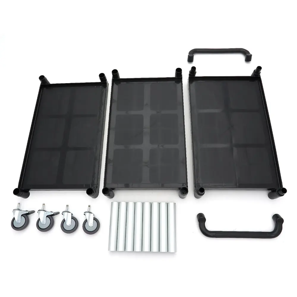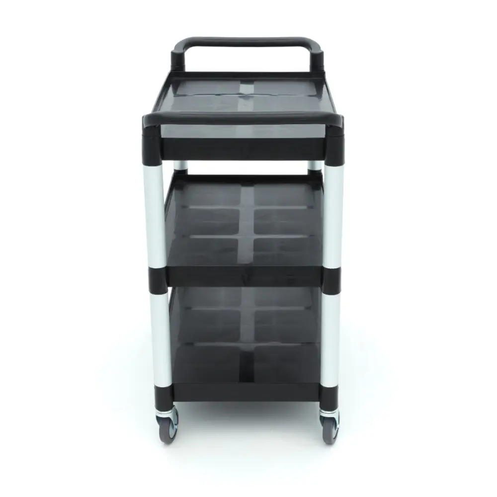 Tento servírovací vozík vám ušetří spoustu chůze a zvedání, protože práci za vás odvede servírovací vozík. Je ideální pro přepravu a servírování jídel. Servírovací vozík je také výborným pomocníkem při úklidu špinavého nádobí v kuchyni. Tento profesionální servírovací vozík je vybaven třemi plastovými policemi.