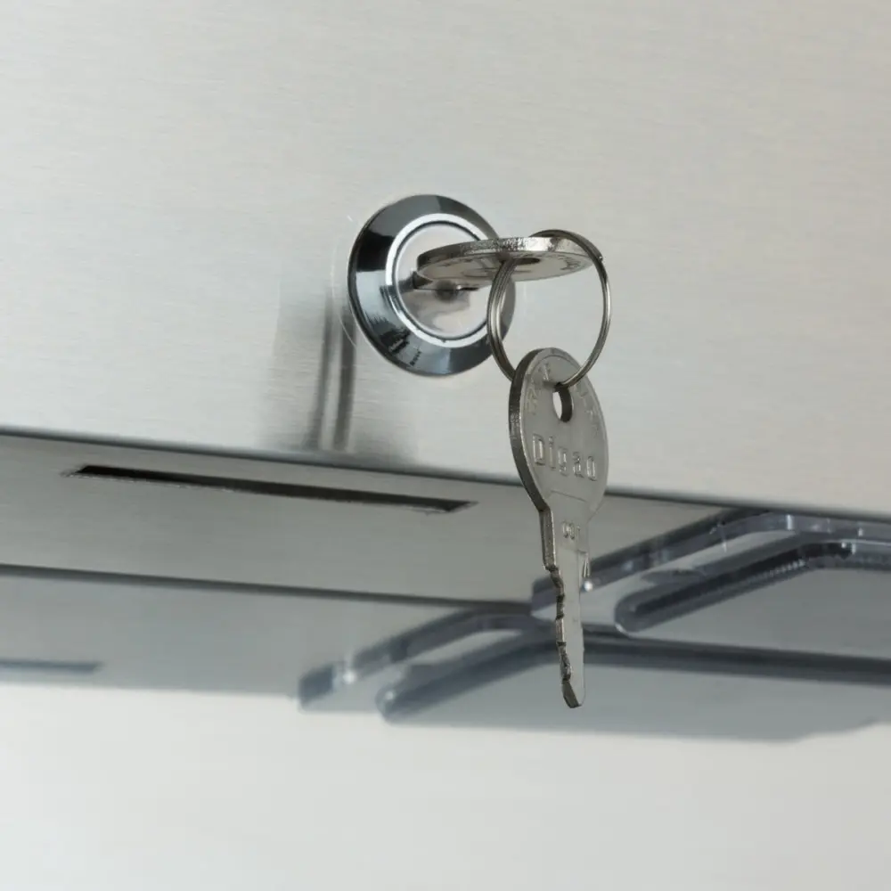 Mraznička má dvoje robustní dveře s magnetickým těsněním. To zajišťuje, že se dveře samy zavírají. Tím se zabrání tomu, aby dveře zůstaly otevřené a došlo k rozmrazení vašich produktů. Dveře lze jednotlivě uzamknout klíčem. Nad dveřmi můžete přesně odečítat teplotu a nastavovat ji pomocí tlačítek se šipkami. Teplotu v mrazničce můžete nastavit v rozmezí od -10 do -20 °C. Při otevření nebo zavření dveří se automaticky rozsvítí nebo zhasne světlo ve dveřích. Přestože se jedná o velkou mrazničku, díky čtyřem kolečkům pod ní se s ní snadno pohybuje. Přední kolečka jsou vybavena brzdou, která udržuje mrazničku na místě.