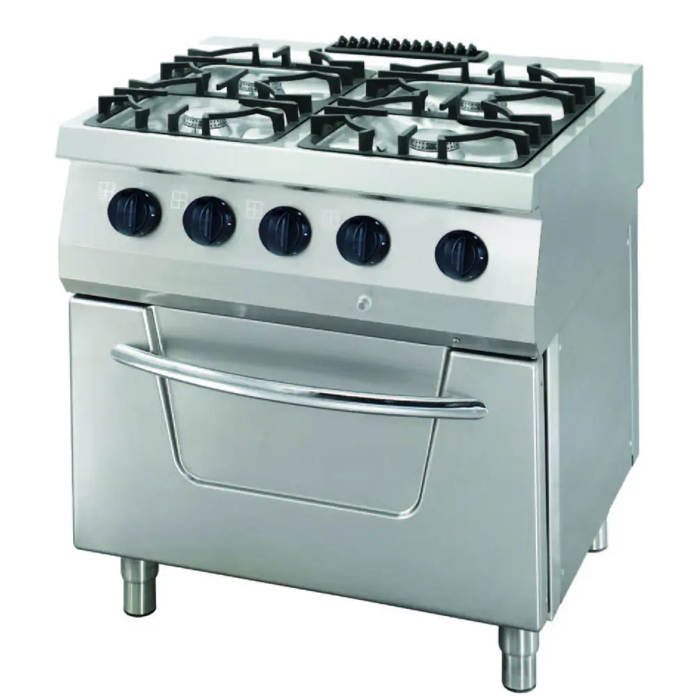 Tento plynový sporák je navržen tak, aby odolal nárokům komerčních kuchyní, a je vybaven vnějším povrchem z nerezové oceli odolné proti korozi. Nastavitelné nožičky zajišťují stabilitu na jakémkoli povrchu a hladká monobloková horní deska se po použití snadno otře. Tento model pracuje na 400 V / 3fázový elektrický proud a je vhodný pro použití se zemním plynem (G25) nebo LPG (G30).