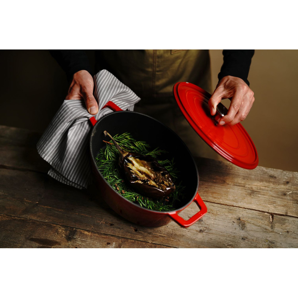 Litinový kastrol smaltovaný, HENDI, 4,4L, Červená, 365x290x(H)115mm | 626849
