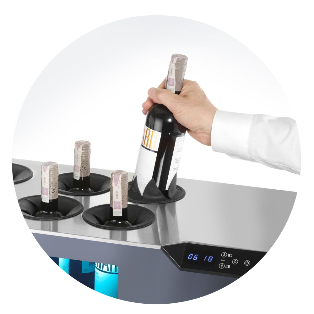 S touto nerezovou chladničkou na pizzu se dvěma dveřmi a žulovou pracovní deskou se skleněným...