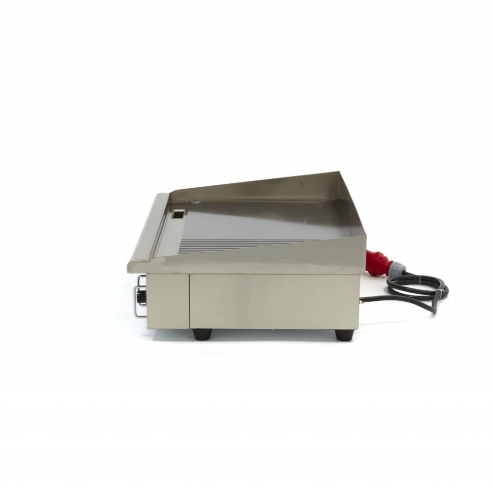 Teplotu tohoto elektrického grilu lze nastavit v rozmezí 50 °C až 300 °C. To vám umožní připravovat různé produkty při různých teplotách. Gril je také vybaven praktickým ukazatelem teploty. Když kontrolka zhasne, víte, že můžete začít vařit. Protože v profesionální kuchyni je velmi důležitá bezpečná práce, je rošt vybaven ochranou proti přetížení. Vysoké nerezové kryty proti rozstřiku kolem roštu zabraňují rozstřiku oleje. Elektrický gril je také velmi uživatelsky přívětivý. Stačí jej zapnout tlačítkem zapnutí, namazat grilovací plochu a počkat, až bude dosaženo správné teploty, a poté grilovat.