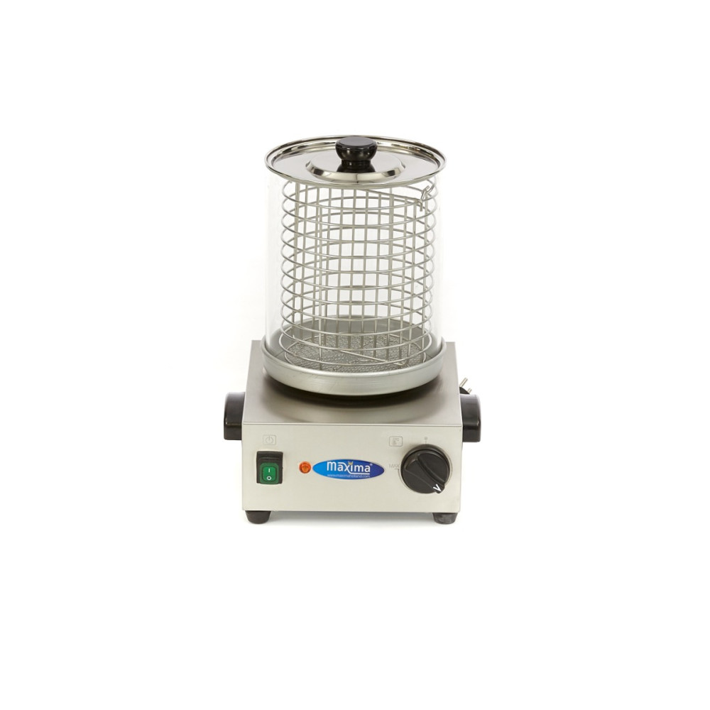 S tímto profesionálním ohřívačem hot dogů můžete snadno a rychle připravit lahodné hot dogy. Naplňte hliníkový zásobník na vodu a položte na něj svislý skleněný válec. Koš má velkou kapacitu, takže v něm můžete ohřát velké množství párků v rohlíku najednou.