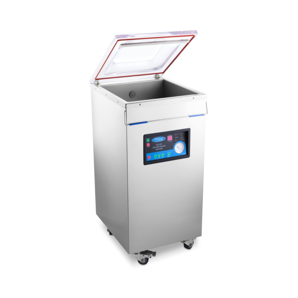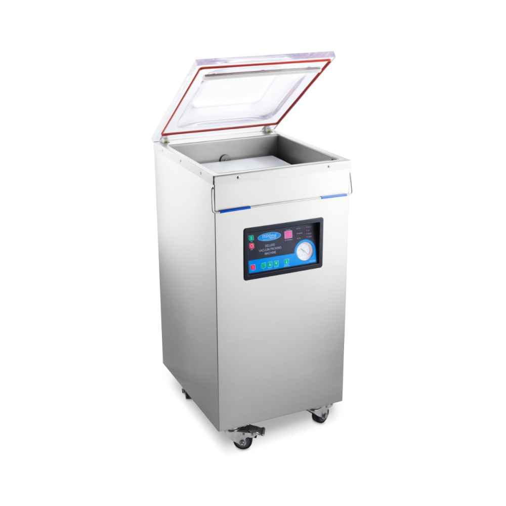 Tento mobilní vakuový balicí stroj s prostornou komorou pro balení velkého množství potravin je přínosem v každém stravovacím zařízení. Nejenže zabráníte plýtvání, ale také můžete potraviny déle uchovat. Další výhodou používání tohoto profesionálního balicího stroje je, že ušetříte místo v chladničce nebo mrazničce. Kompaktní vakuové sáčky zabírají méně místa než jiné možnosti skladování, jako jsou plastové krabičky nebo GN nádoby. Protože je ze sáčku odstraněn vzduch, zůstává déle čerstvý. Tento podlahový model má plně automatizovaný proces balení.