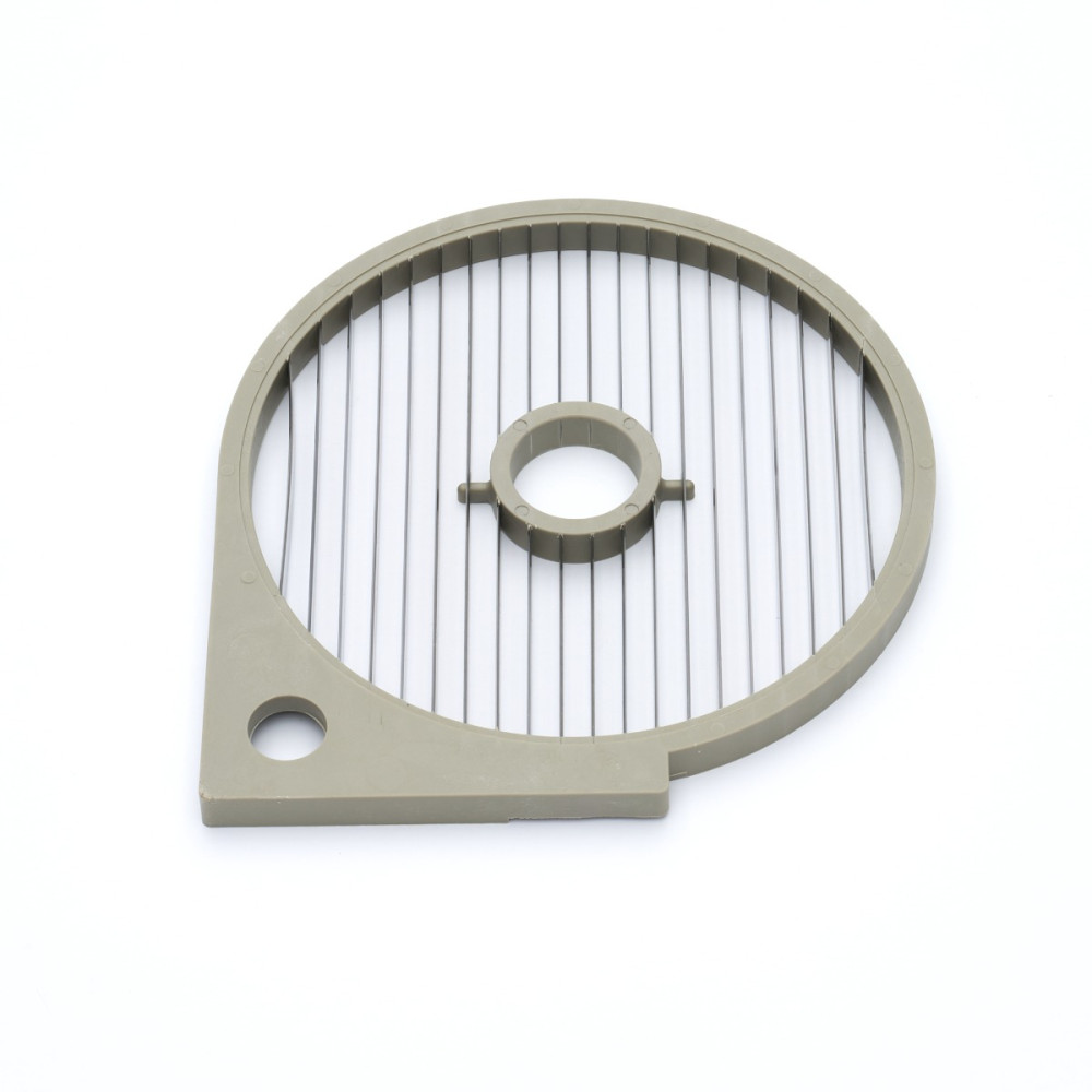 Tento hliníkový kráječ na hranolky 8 mm je vhodný pro kráječ zeleniny VC450. Tento kráječ umožňuje krájet brambory na dlouhé tenké proužky. Abyste mohli krájet brambory na hranolky, je třeba tento kráječ na hranolky kombinovat se standardním kráječem 8 mm. Kráječ lze vložit do kráječe zeleniny. Jakmile skončíte, lze krájecí kotouč vyjmout a vyčistit teplou mýdlovou vodou. Ujistěte se, že jste krájecí kotouč důkladně osušili a pro správnou údržbu nanesli na krájecí kotouče trochu rostlinného oleje.