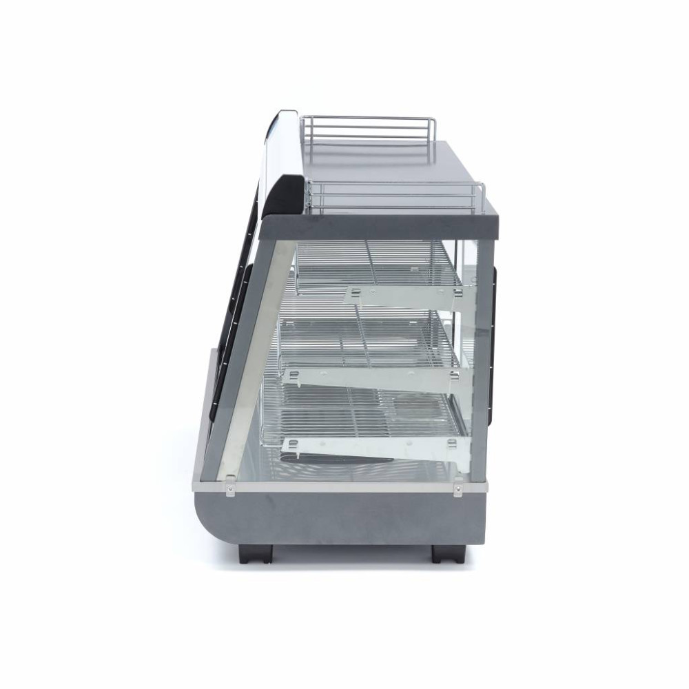 Vyhřívaný stojan na potraviny je přínosem pro každou samoobslužnou restauraci, hotel a další stravovací zařízení, kde se zákazníci mohou obsluhovat sami. Díky objemu 136 litrů a šířce 91,5 cm je na třech nastavitelných a pochromovaných policích dostatek místa pro udržení správné teploty různých produktů. V této výkonné vyhřívané vitríně můžete bez námahy uchovávat například pečivo, občerstvení a předkrmy, ale také grilované pokrmy. V přední části se nacházejí krásné skleněné posuvné dveře, takže si zákazníci mohou snadno vyndat výrobek podle svého výběru. Zadní část je rovněž vybavena posuvnými dveřmi pro rychlé doplňování zásob. Na všech čtyřech stranách jsou umístěna skleněná skla a díky praktickému LED osvětlení jsou výrobky prezentovány atraktivním způsobem.