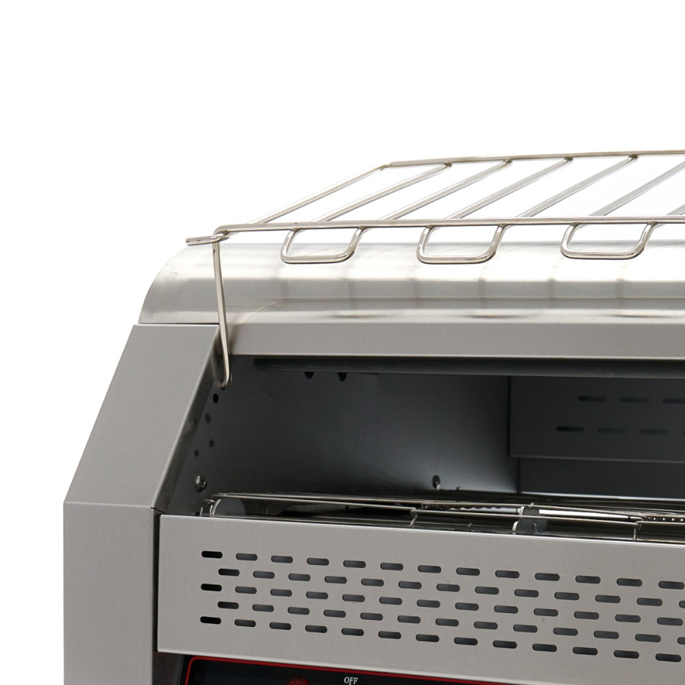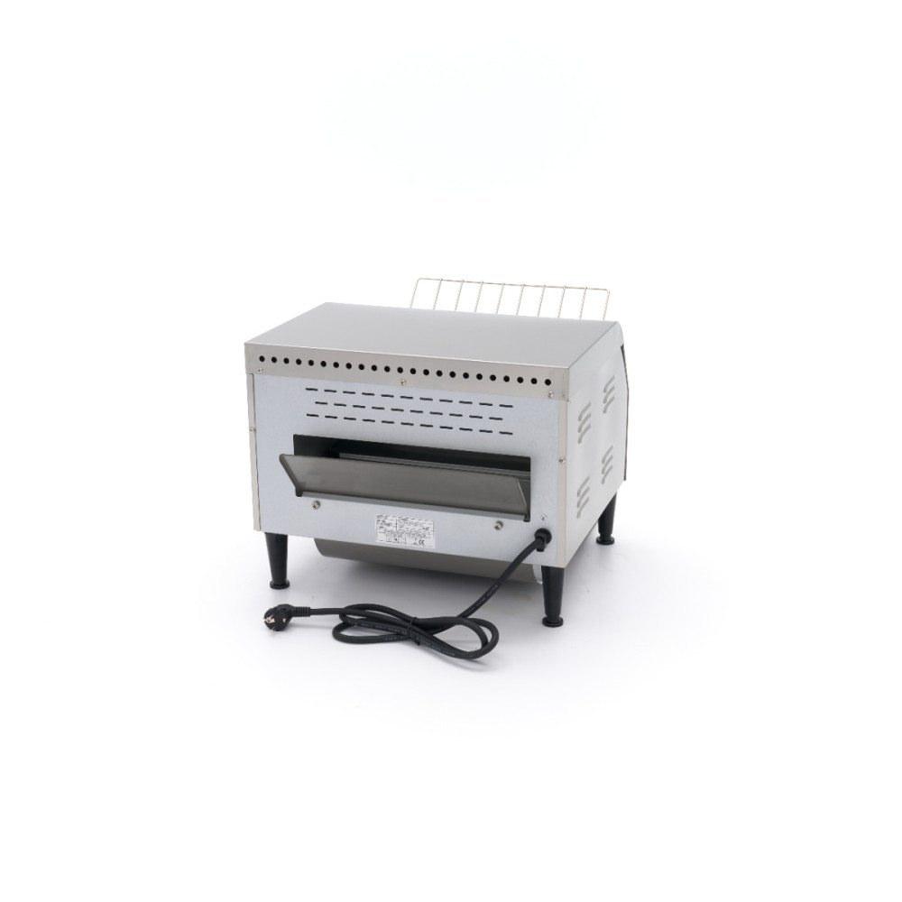Tento dopravníkový topinkovač je profesionální spotřebič s elegantním designem a vysokou kapacitou. Dokáže opéct až 450 plátků chleba za hodinu. Skvěle se hodí také k opékání pistolí a housek. Chléb prochází topinkovačem po dopravním pásu a vyjíždí opečený na spodní straně.
