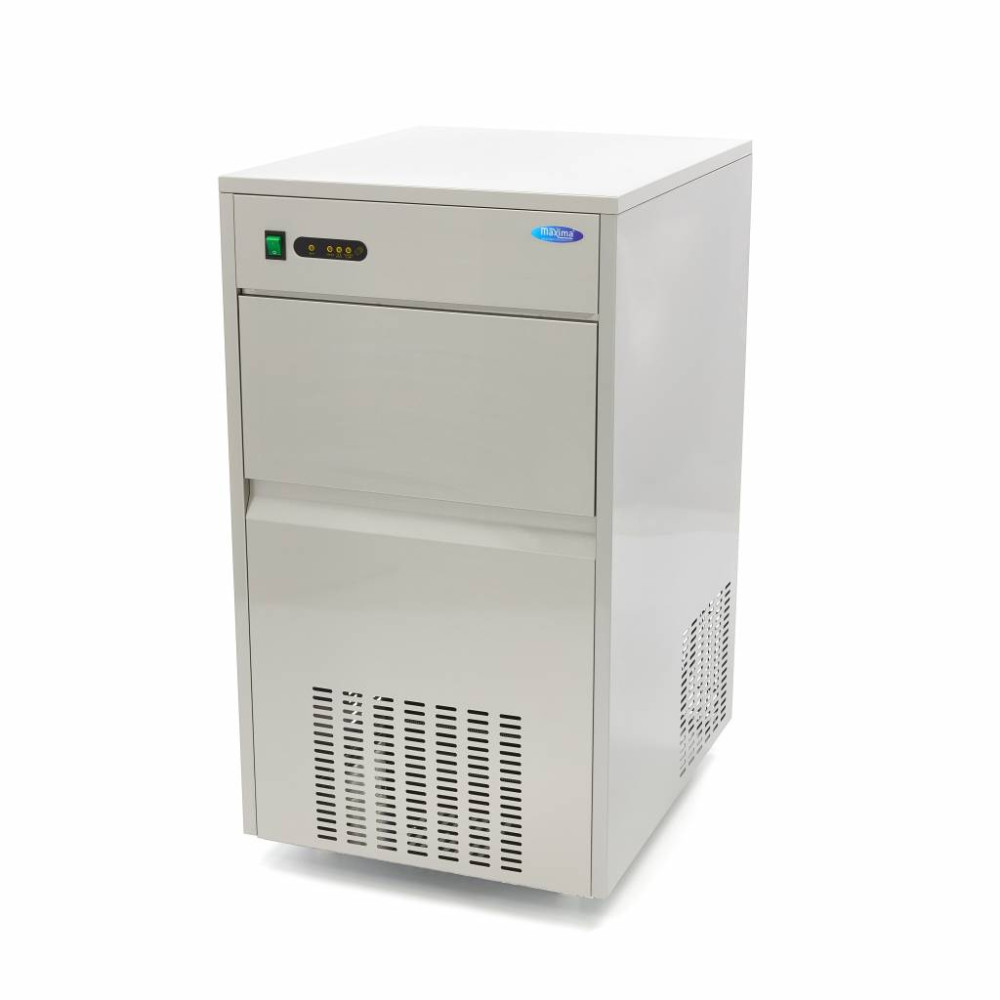 Tento výrobník ledu je chlazený vzduchem, takže je vhodný pro použití v interiéru i v nepříliš teplých místnostech. Díky dobré izolaci a hygieně tento spotřebič vyrábí rovnoměrné a kvalitní kostky ledu. Pro zajištění dobré bezpečnosti práce je vybaven ochranou proti přetížení. Dodávané hadice lze použít k připojení přístroje k přívodu pitné vody. Zásobník na vodu se pak automaticky naplní, takže výrobník ledu může neustále vyrábět nové kostky ledu, aniž by vyžadoval ruční práci. Součástí je také lopatka na led, která umožňuje hygienické odebírání kostek ledu. Výrobník ledu není vybaven vypouštěcím čerpadlem. Vypouštěcí hadice by měla být připojena níže, než je výtok ze zařízení. K chlazení spotřebiče se používá účinný chladicí systém s chladivem R290. Je také vybaven ovládacím panelem s výstražnými kontrolkami, které signalizují případné poruchy, plnou zásobní nádrží a nízkou hladinou vody.