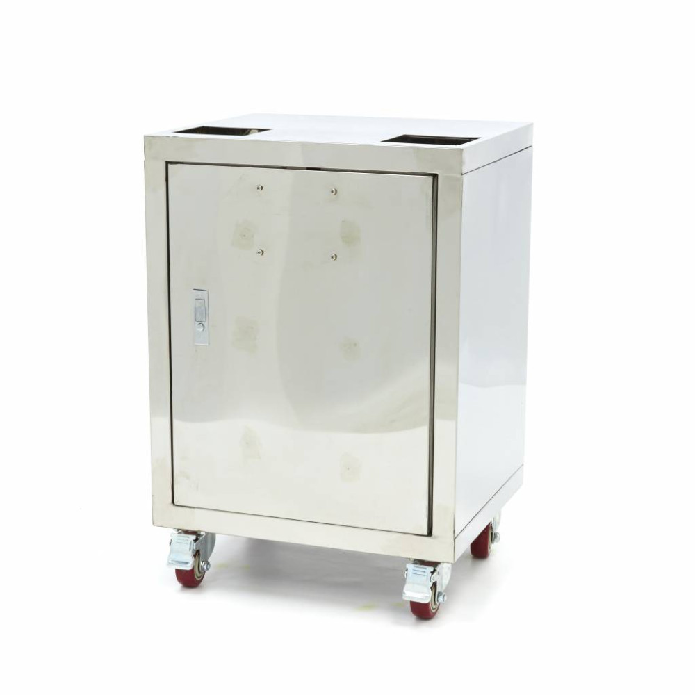 Skříň, nádoba a příslušenství jsou vyrobeny z nerezové oceli, díky čemuž se velmi snadno čistí. K hygienickému a bezproblémovému čištění stačí vlhký hadřík a jemný čisticí prostředek. Kbelík lze také vyjmout ze základny a snadno jej vyprázdnit.