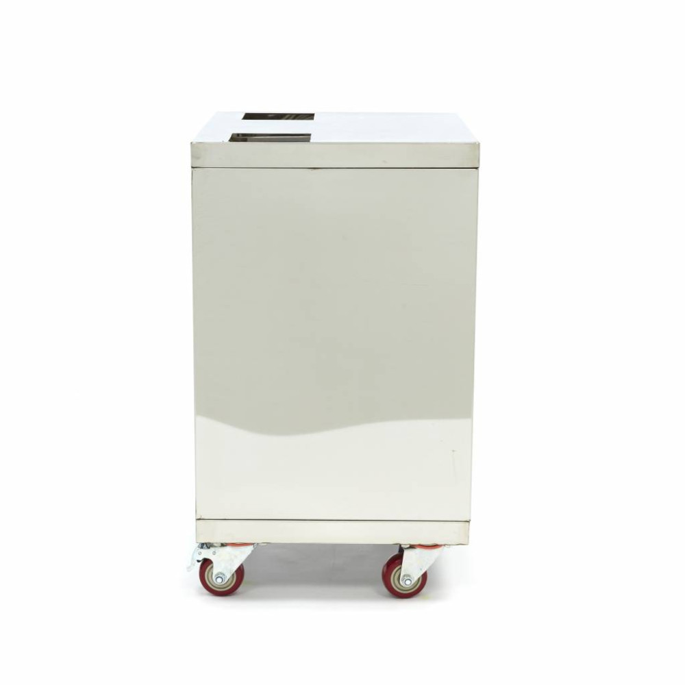 Tento vozík má základnu na kolečkách vyrobenou výhradně z nerezové oceli a je ideální pro kombinaci s automatickým odšťavňovačem MAJ-26X nebo odšťavňovačem pomerančů MAJ-50X. Odšťavňovače mohou být poměrně těžké a obtížně se přemísťují, ale s tímto praktickým vozíkem můžete odšťavňovač kdykoli přemístit na jiné místo. To je užitečné zejména tehdy, když je třeba odšťavňovač vyčistit a je vhodnější to provést v kuchyni.