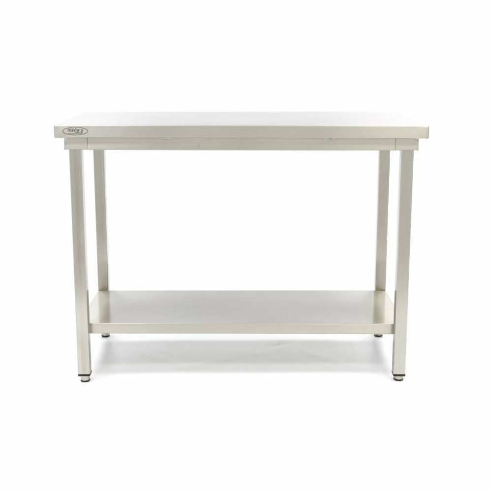 Tento vysoce kvalitní pracovní stůl má pracovní desku se zalomenými okraji. Hrany jsou navíc svařované a leštěné. Úhledně dokončený pracovní stůl bez ostrých hran je nejlepší pro bezpečné pracovní prostředí. Tento pracovní stůl nemá zvýšený okraj v zadní části. Police pod ním nabízí prostor pro další úložné prostory a je ideální pro uložení kuchyňského náčiní. Pomáhá udržovat pracovní prostor čistý a prázdný. Podstavec stolu nelze výškově nastavit. Pracovní stůl se dodává v plochém balení, což znamená, že bude třeba jej sestavit. Díky dodávanému nářadí a velmi jednoduché montáži to není žádný problém. Během 10 minut je pracovní stůl z nerezové oceli připraven k použití v kuchyni.