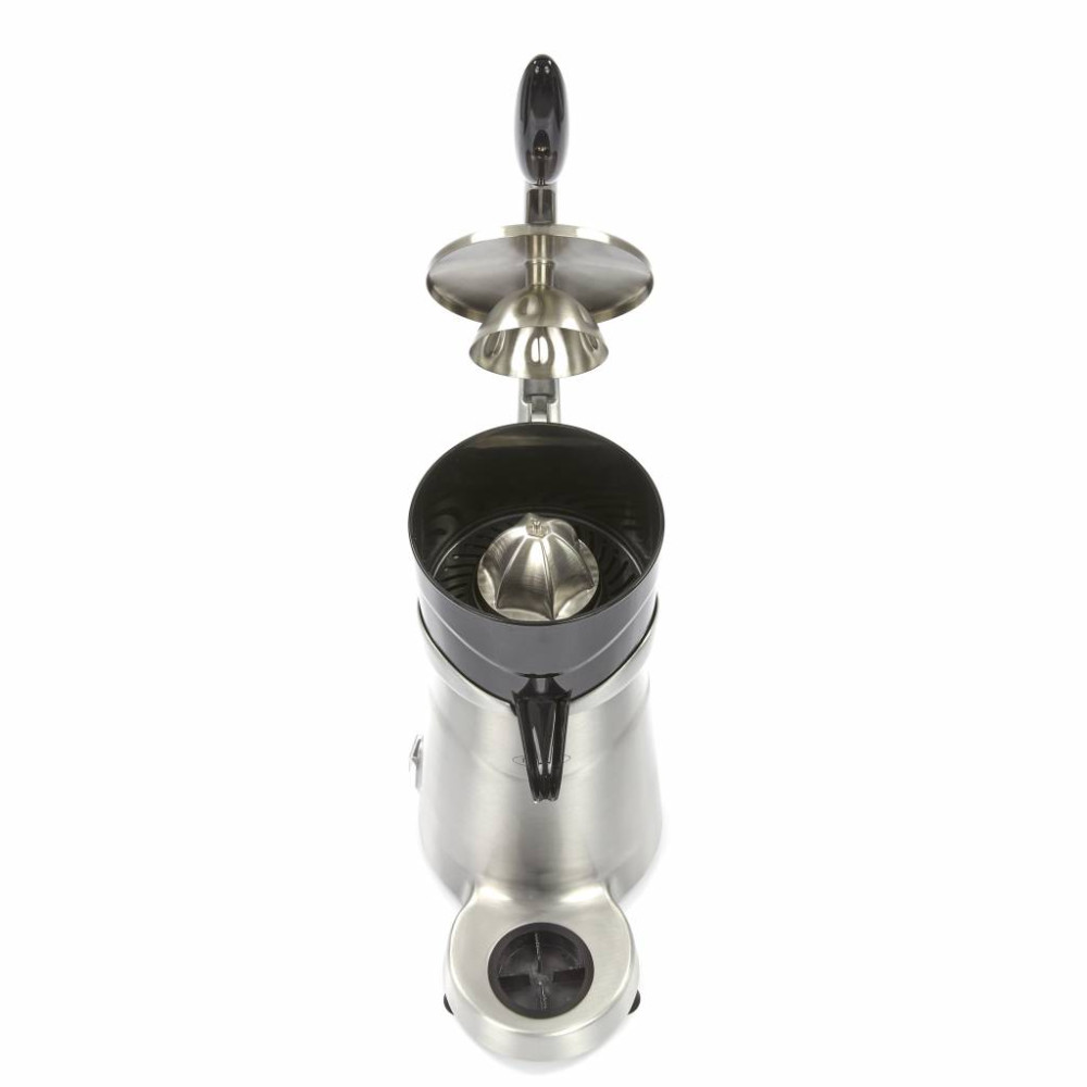 Pomocí tohoto automatického elektrického odšťavňovače můžete během chvilky připravit spoustu čerstvě vymačkané pomerančové šťávy. Tento profesionální odšťavňovač je přínosem v každé restauraci, kavárně, jídelně nebo jiném gastronomickém podniku. Protože se jedná o stolní model, můžete jej snadno umístit na stůl, pult nebo na bar pro snadný přístup. Pod nalévací hubici můžete také umístit sklenice, nebo dokonce láhve až do výšky 19 cm. Odšťavňovač je uživatelsky velmi přívětivý a lze jej ovládat ručně. Nejprve přístroj zapněte a umístěte poloviny pomeranče na lisovací hlavu. Poté zatlačte páku směrem dolů. Šťáva se shromažďuje v plastovém zásobníku a vytéká z výlevky.