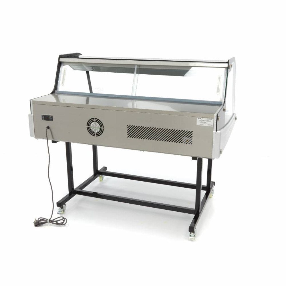 Chladnička s podstavcem na kolečkách je vynikající alternativou, pokud vám na pracovní desce chybí místo. Tato chladnička s vitrínou je ideální, pokud ji potřebujete pravidelně přemisťovat. Přední část má zakřivené skleněné okno pro snadný výhled a zadní část je vybavena dvěma posuvnými dveřmi, takže můžete rychle vyměňovat potraviny i obsluhovat zákazníky. Tento spotřebič má objem 255 litrů a vejdou se do něj tři nádoby 1/1 GN a dvě nádoby 1/4 GN Gastronorm s maximální hloubkou 15 cm. Pokud chcete základnu raději skrýt, můžete tak učinit pomocí obalu, který doplní vaši firmu a značku.