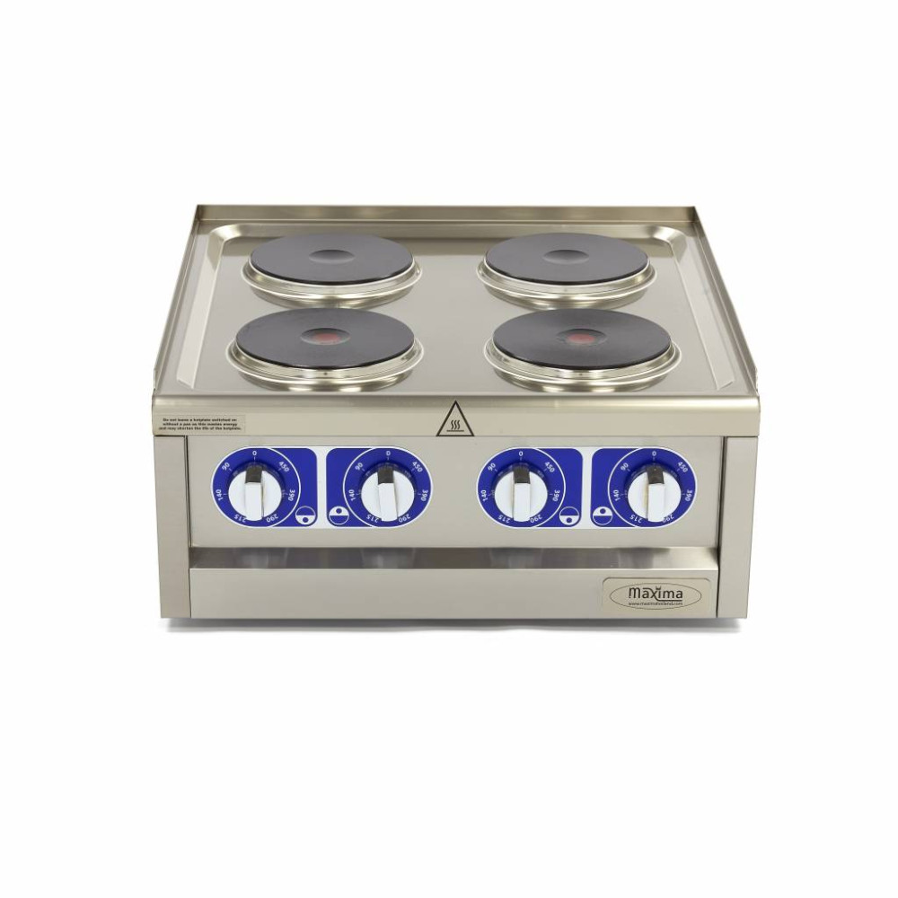 Tento elektrický sporák je vhodný pro intenzivní a každodenní používání v profesionální kuchyni. Sporák má čtyři hořáky a lze jej umístit do varné linky hluboké 600 mm. Díky konstrukci z nerezové oceli a monoblokové desce se sporák snadno čistí.