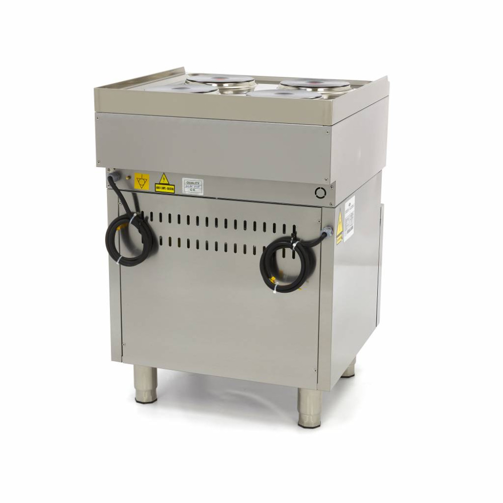 Tento elektrický čtyřplotýnkový profesionální vařič pro gastronomii nejenže připraví ty nejchutnější pokrmy na pánvi, ale má také troubu. V troubě můžete používat plechy 1/1 GN. Tento všestranný sporák je ideální pro každodenní a intenzivní používání. Vařič můžete také umístit do 600 mm hluboké varné linky.