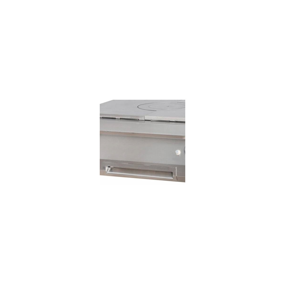 Varná plocha je vyrobena z 22 mm silné litiny a obsahuje různé tepelné zóny, takže můžete vařit vždy při teplotě, kterou potřebujete. Ve středovém kruhu se teplota může dostat až na 500 °C a na vnějším okraji se teplota pohybuje kolem 200 °C. Otevřený litinový hořák nabízí také dva plameny, jeden o výkonu 10 kW a druhý o výkonu 4 kW. Díky hladkému povrchu z nerezové oceli se vařič také snadno čistí. Tomu skutečně napomáhá velká odkapávací miska, která se snadno vysouvá z přední části, aby ji bylo možné vyprázdnit.