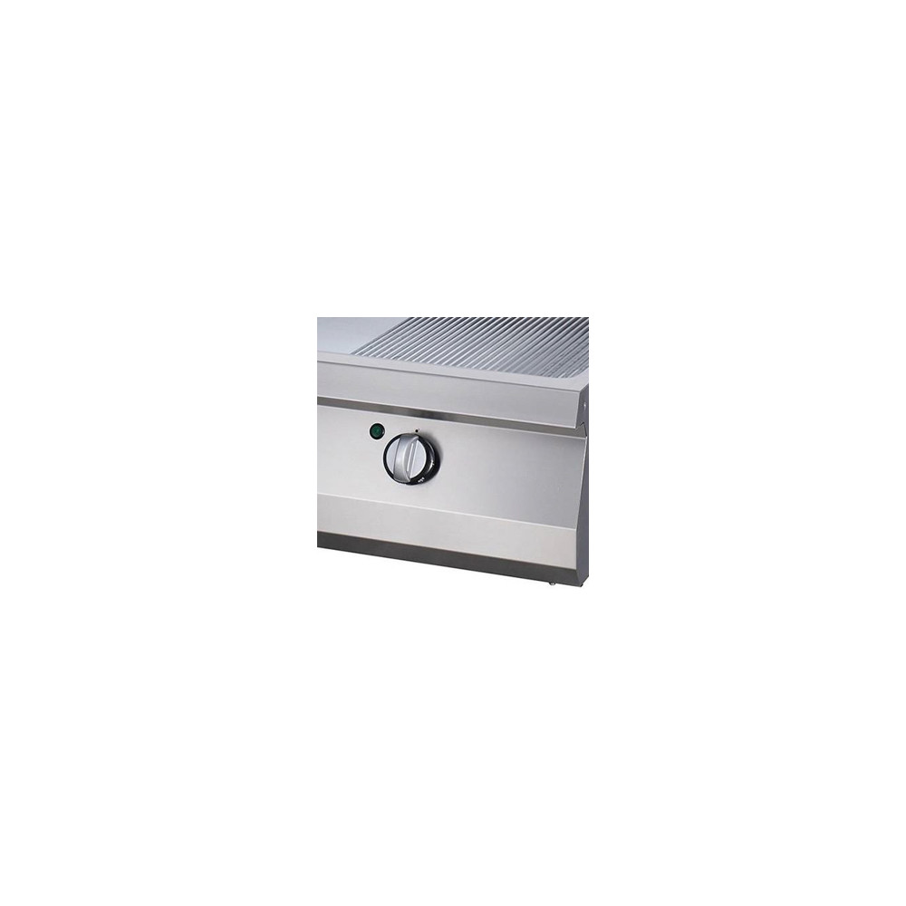 Tento robustní rošt vydrží náročné používání a je vybaven dvojitým roštem z nerezové oceli s drážkami a hladkým povrchem se saténovou úpravou. Grilovací deska je zasazena do vodotěsné prohlubně a díky bezešvě svařené horní části nezůstávají po čištění žádné zbytky. Je také vybaven odkapávací miskou o objemu 1,5 litru a ochranou proti stříkajícímu oleji. Pro nastavení teploty použijte bezpečnostní termostat pro teploty v rozmezí 50 až 300 ºC. Gril se také dokonale hodí do varné linky.