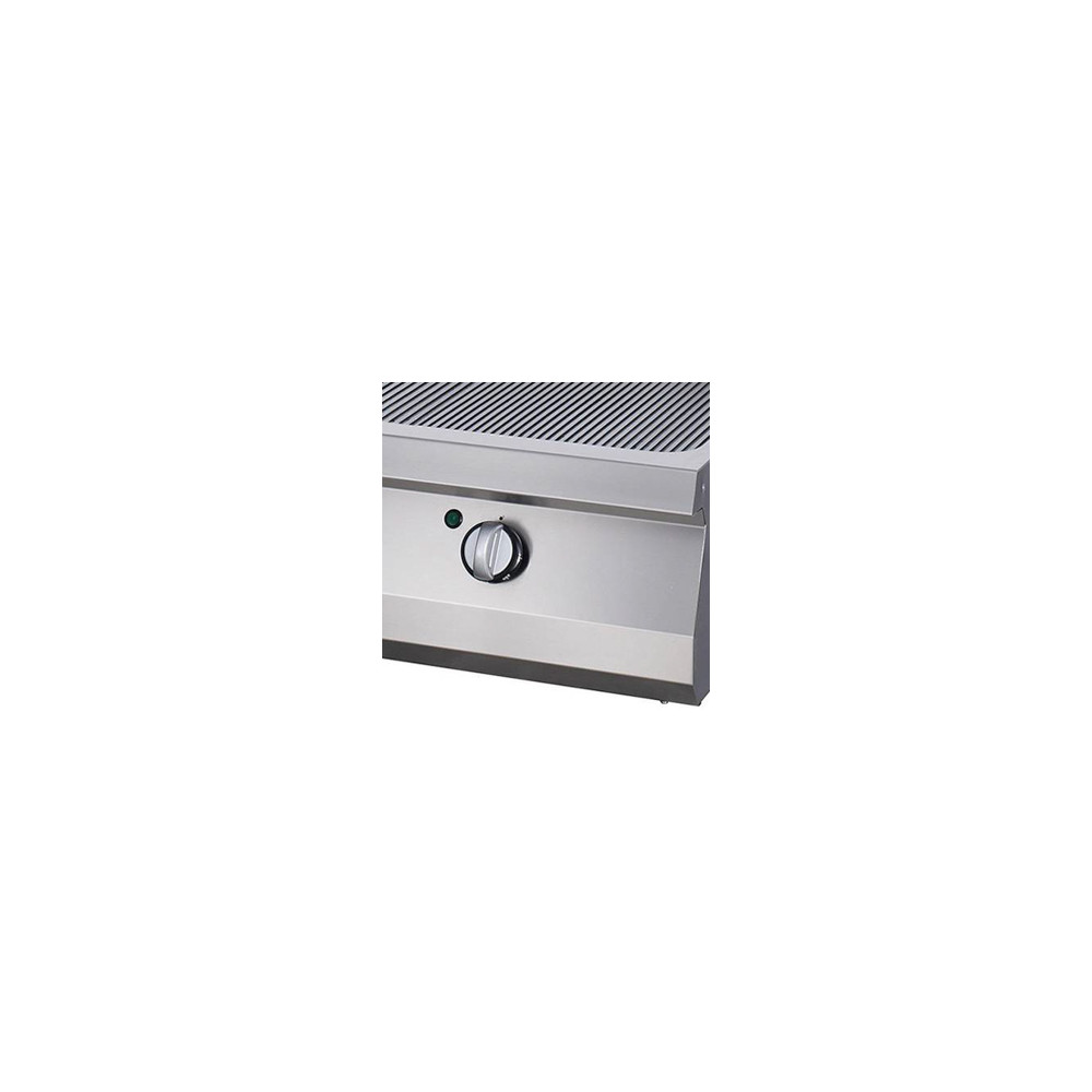 Tento robustní rošt vydrží náročné používání a je vybaven dvojitým drážkovaným roštem z 15mm tvrzené nerezové oceli se saténovým povrchem. Grilovací deska je zasazena do vodotěsné prohlubně a díky bezešvě svařené horní části nezůstávají po čištění žádné zbytky. Je také vybaven odkapávací miskou o objemu 1,5 litru a ochranou proti stříkajícímu oleji. Pro nastavení teploty použijte bezpečnostní termostat pro teploty v rozmezí 50 až 300 ºC. Gril se také dokonale hodí do varné linky.