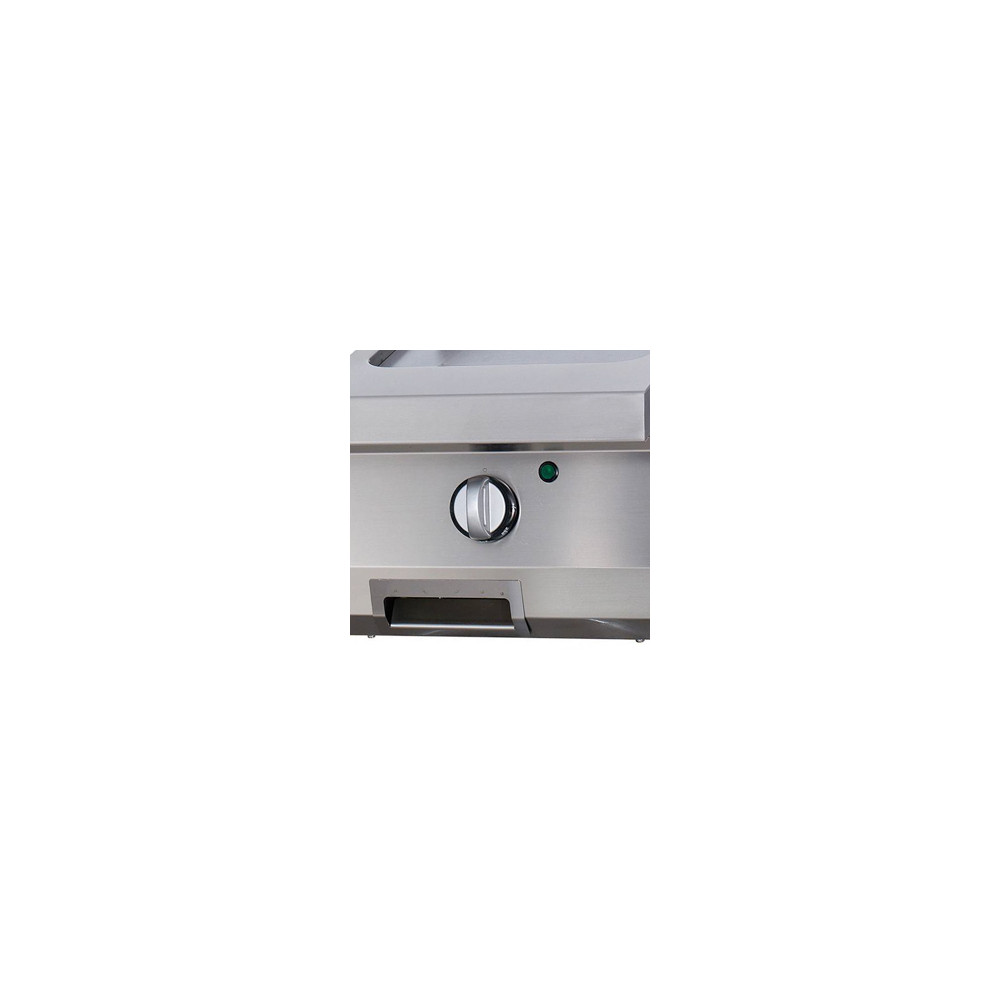 S touto robustní grilovací deskou grilujete pokrmy na hladké 15mm desce z tvrzené nerezové oceli se saténovým povrchem. Grilovací deska je pěkně zasazena do vodotěsné prohlubně. Praktická odkapávací miska o objemu 1,5 litru a ochrana proti rozstřiku zabraňují rozlití oleje a zajišťují bezpečnost práce s touto pánví. Pomocí bezpečnostního termostatu lze nastavit teplotu v rozmezí 50 až 300 ºC. Pokud v kuchyni pracujete s varnou linkou, tento gril se k ní skvěle hodí.