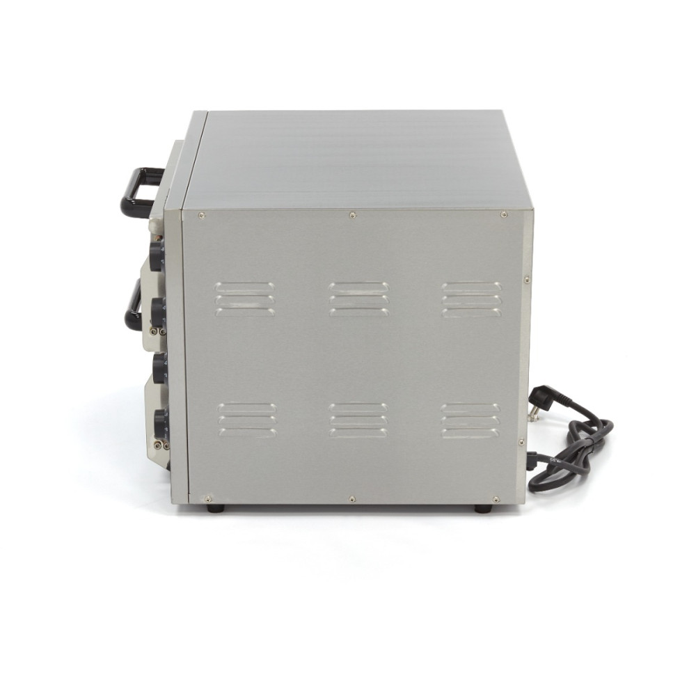 Tato robustní pec na pizzu z nerezové oceli je dvoukomorová. Kameny na pizzu mají kapacitu na dvě pizzy o průměru 40 cm nebo osm pizz o průměru 20 cm. Obě komory mají individuální ovládání teploty pro horní a spodní topné těleso. Pec má také vnitřní osvětlení.