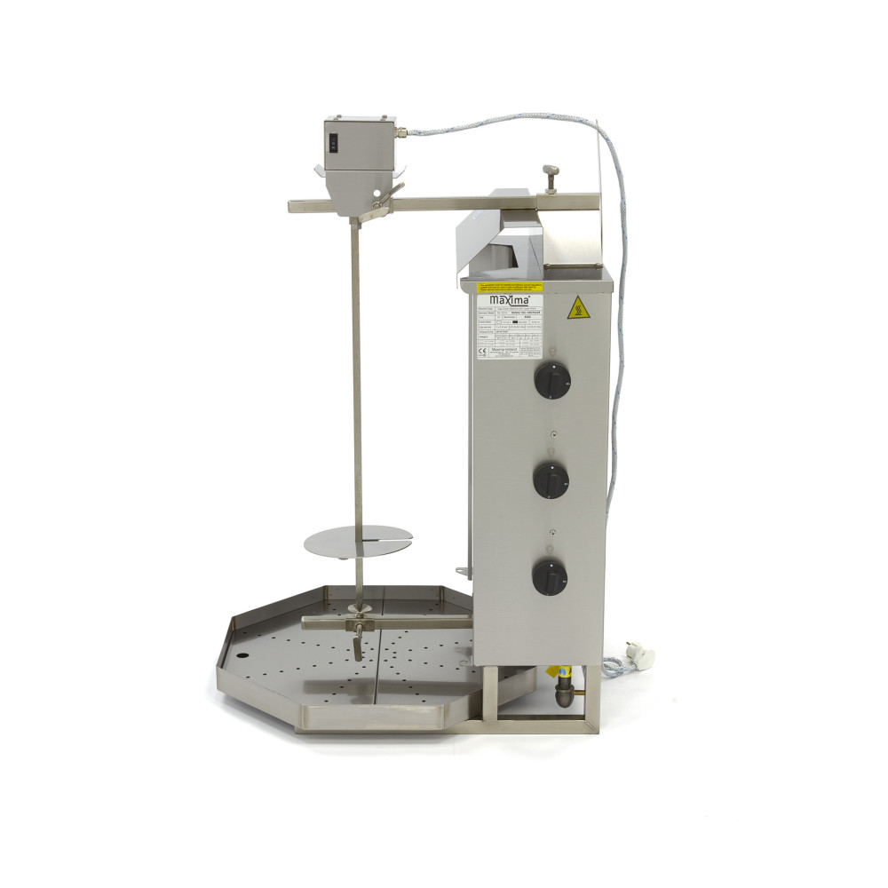 Tento vysoce kvalitní gril na doner kebab má tři plynové hořáky a špičkový motor. Teplotu hořáků lze nastavit individuálně a gril na kebab je vhodný pro přípravu lahodných donerů, gyrosu, kebabu nebo šašliků. Perfektně se hodí pro každodenní použití v prodejně shawarmy, food trucku a restauracích.