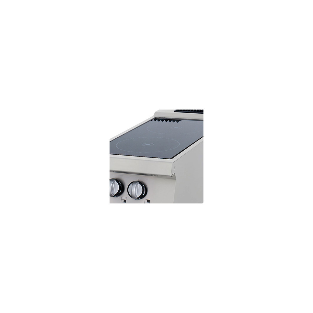 Každou ze dvou topných zón lze ovládat samostatně, což vám umožní připravovat více pokrmů najednou. Kvalitní keramický povrch rovnoměrně rozvádí teplo s teplotním rozsahem 50 °C až 300 °C. Vestavěný bezpečnostní termostat a světelné kontrolky zajišťují bezpečnou a jednoduchou obsluhu. Ideální pro začlenění do varné linky s dalším profesionálním kuchyňským vybavením.