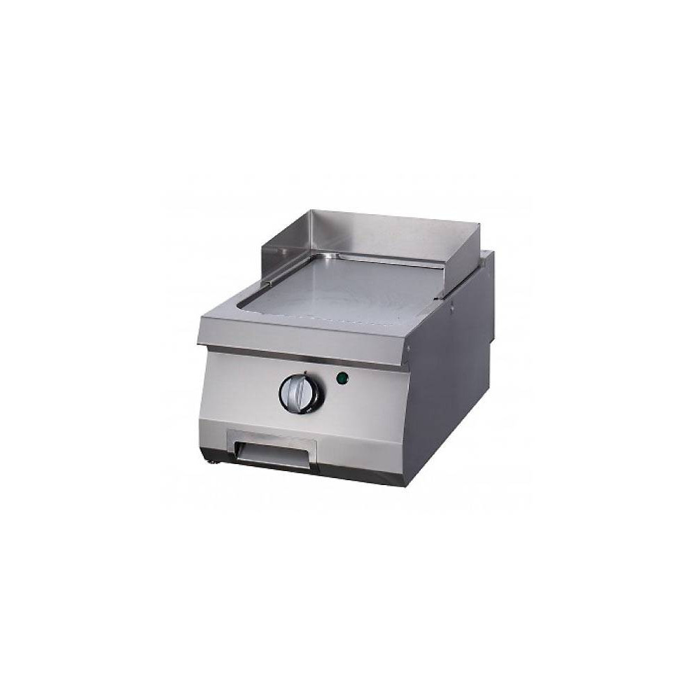 Na této robustní pánvi se pokrmy grilují na hladké pochromované 15mm desce z tvrzené nerezové oceli se saténovým povrchem. Grilovací deska je zasazena do vodotěsného výklenku. Tento plynový gril je vybaven pilotním světlem a bezpečnostním plynovým ventilem s termočlánkem. Můžete jej používat jak na LPG, tak na zemní plyn. Díky praktické odkapávací misce o objemu 1,5 litru a ochrannému krytu proti stříkajícímu oleji je používání tohoto grilu bezpečné. Pomocí bezpečnostního termostatu lze nastavit teplotu v rozmezí 100 až 300 °C. Pokud ve své kuchyni pracujete s varnou linkou, tento gril se k ní dokonale hodí.