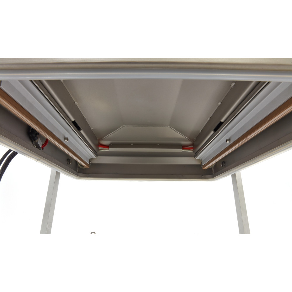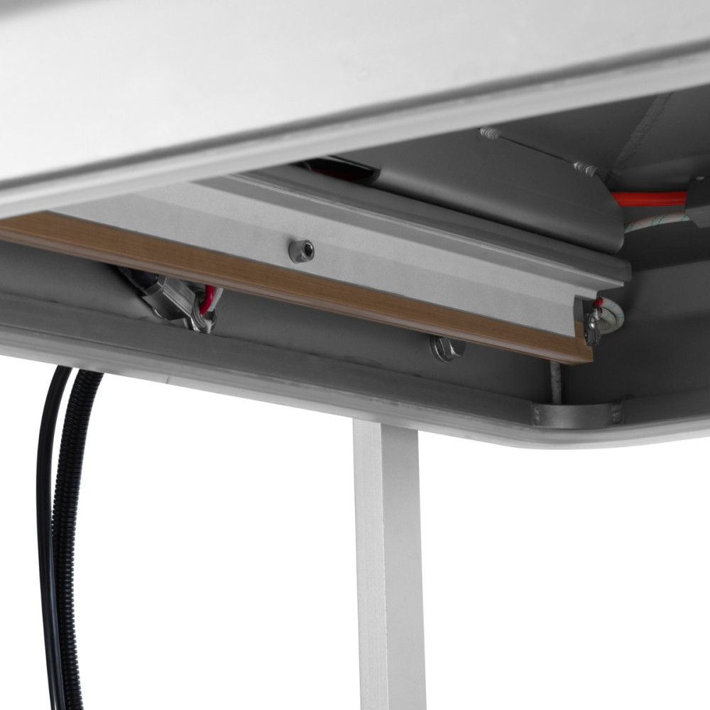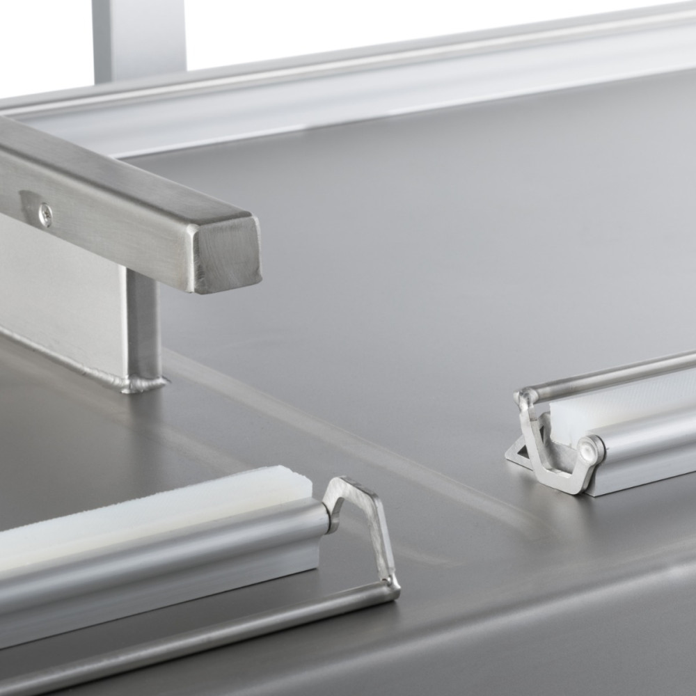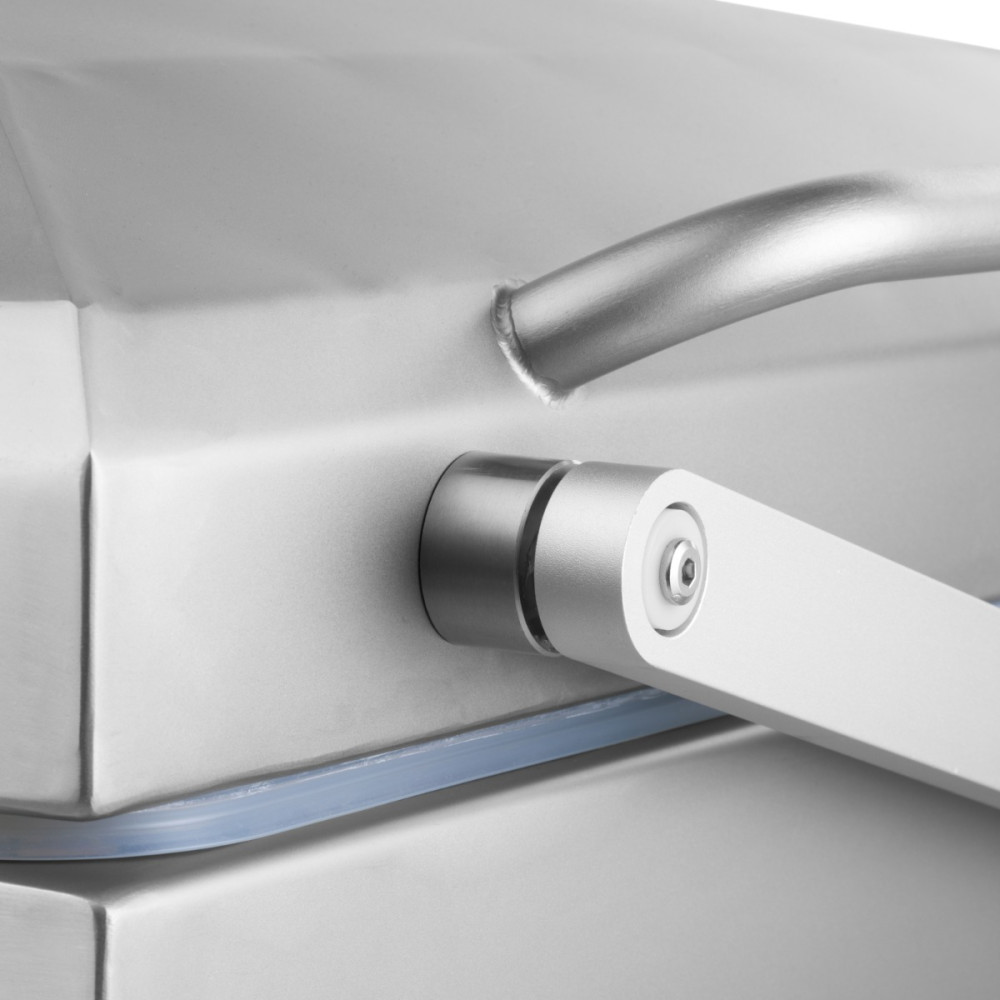 V tomto velkém profesionálním vakuovém balicím stroji jsou dvě oddělené těsnicí komory pro ještě vyšší těsnicí kapacitu. V každé komoře jsou dvě těsnicí tyče, takže lze použít celkem čtyři vakuové sáčky o rozměrech až 50 x 55 cm. Ideálně se hodí pro vytížené profesionální kuchyně, které chtějí uchovat potraviny po delší dobu.