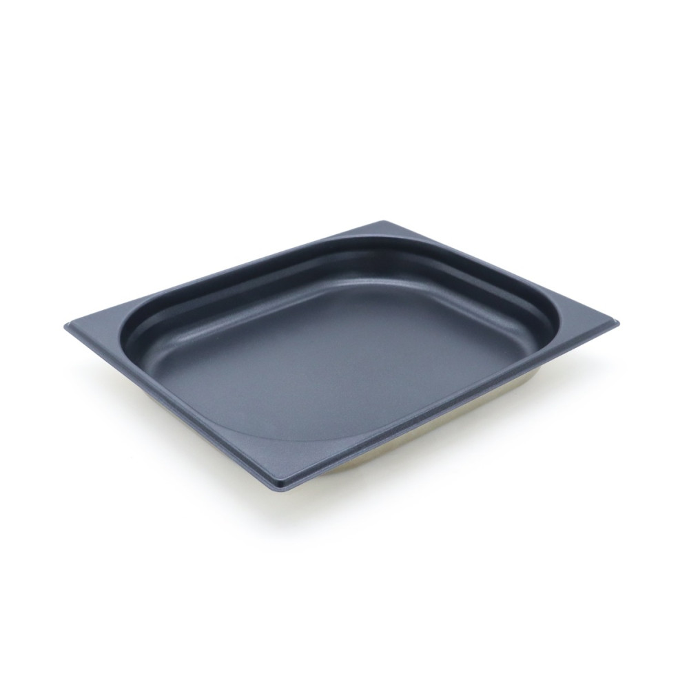 Tato nádoba Gastronorm s teflonovým nepřilnavým povrchem je vhodná pro smažení a opékání bez tuku. Nemusíte používat pečicí papír a můžete do nádoby vkládat produkty přímo. Nádoba Gastronorm je vlastně nezbytností v každé profesionální gastronomické kuchyni. Tyto nádoby jsou univerzální a lze je použít v mnoha různých kuchyňských zařízeních. Gastronorm se označuje zkratkou GN, což je celosvětový standard pro rozměry a hloubku nádob a vík. Většina gastronomických zařízení je vhodná pro použití s nádobami GN. Věnujte zvýšenou pozornost rozměrům, abyste měli doma vždy ty správné nádoby