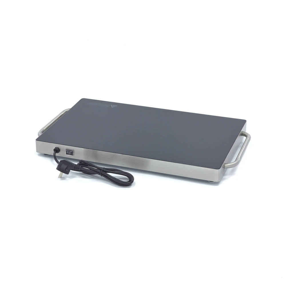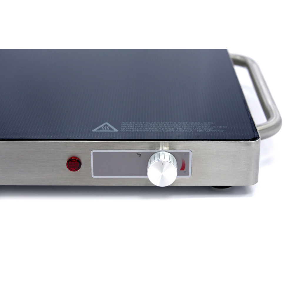 Díky skleněné plotýnce nejvyšší kvality a pouzdru z nerezové oceli se jedná o profesionální tlakový hrnec v kuchyni. Teplota je plynule nastavitelná v rozmezí od 60 °C do 105 °C pomocí otočného knoflíku a plotýnka má ochranu proti přehřátí. Tlačítko ON/OFF se nachází na zadní straně spotřebiče a světelný indikátor ukazuje, kdy se plotýnka zahřívá.