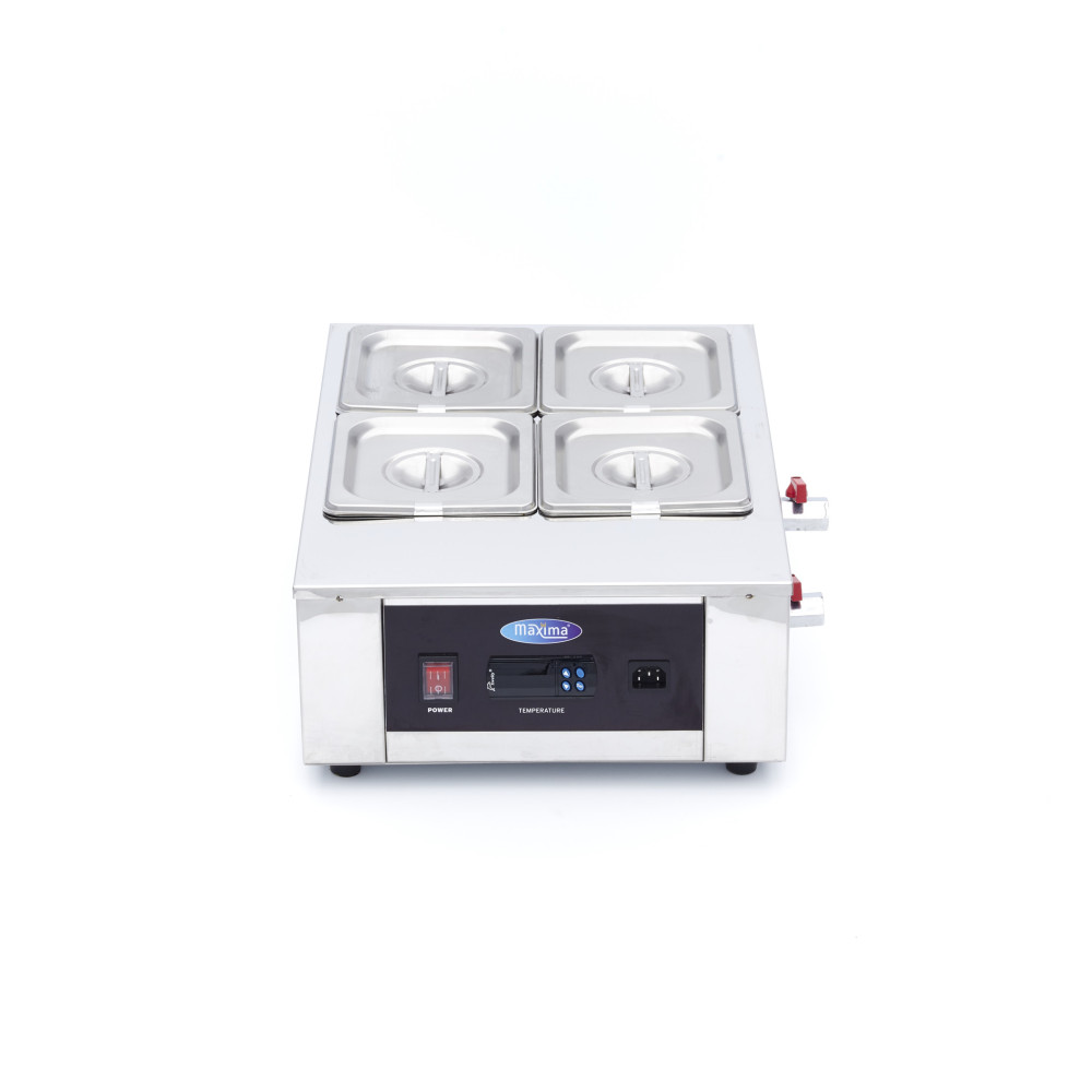 S touto tavicí pistolí nebylo rozpouštění čokolády au bain marie nikdy jednodušší. Díky možnosti přesného nastavení teploty můžete čokoládu rozpouštět pomalu a rovnoměrně, aniž by se připálila. Díky 4 nádobám o velikosti 1/6 GN budete mít vždy připraveno dostatečné množství rozpuštěné čokolády.