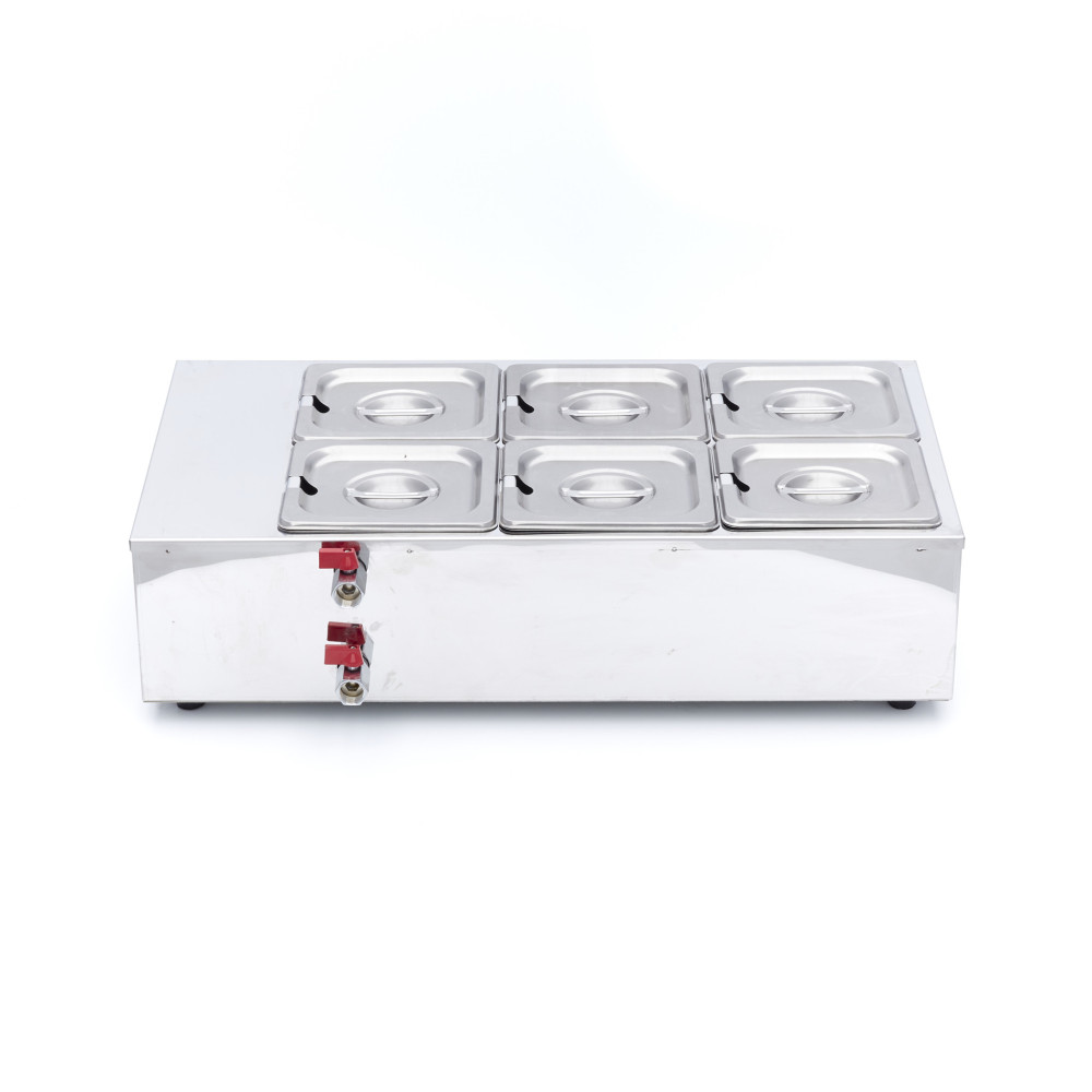Tavič čokolády se skládá z 6 nádob o velikosti 1/6 GN, ve kterých se čokoláda pomalu rozpouští, a je ideální pro zmrzlinárny, čokoládovny, cukrárny a další stravovací zařízení. Protože lze přesně nastavit teplotu, zabráníte spálení čokolády.