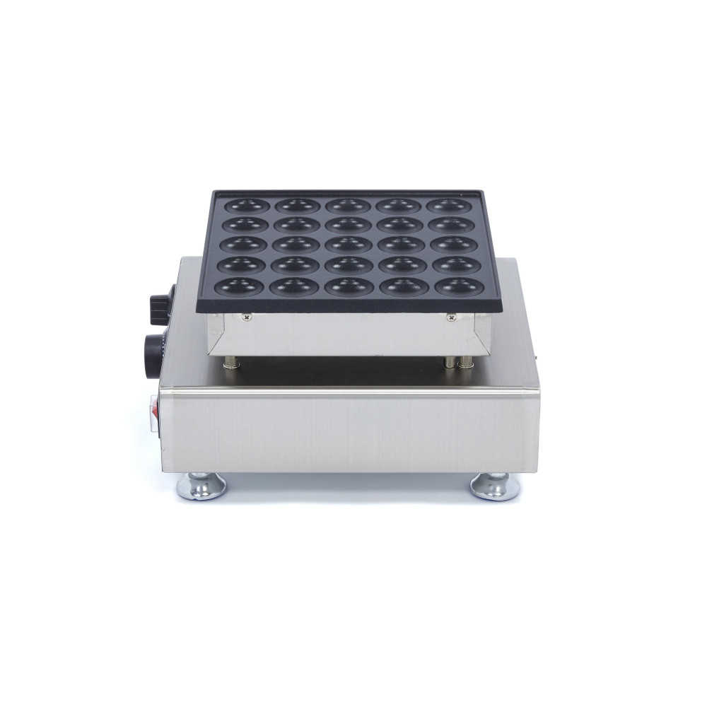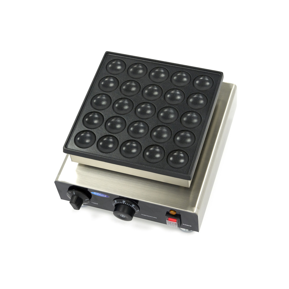 S tímto elektrickým palačinkovačem připravíte 25 chutných mini palačinek během chvilky. Kryt je vyroben z nerezové oceli a hliníková pečicí deska má nepřilnavý povrch. Tento mini palačinkovač je ideální pro každodenní použití ni stáncích s koláči, na trzích a veletrzích, ale také v restauracích a jídelnách.