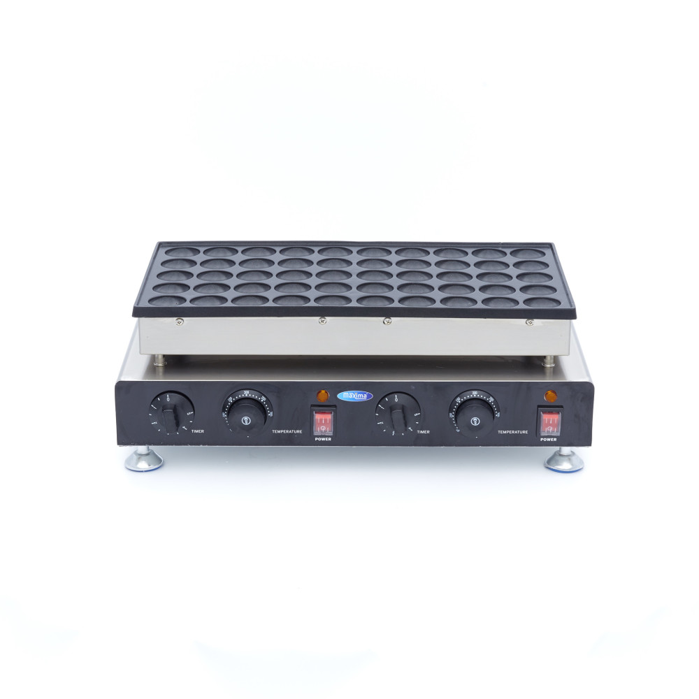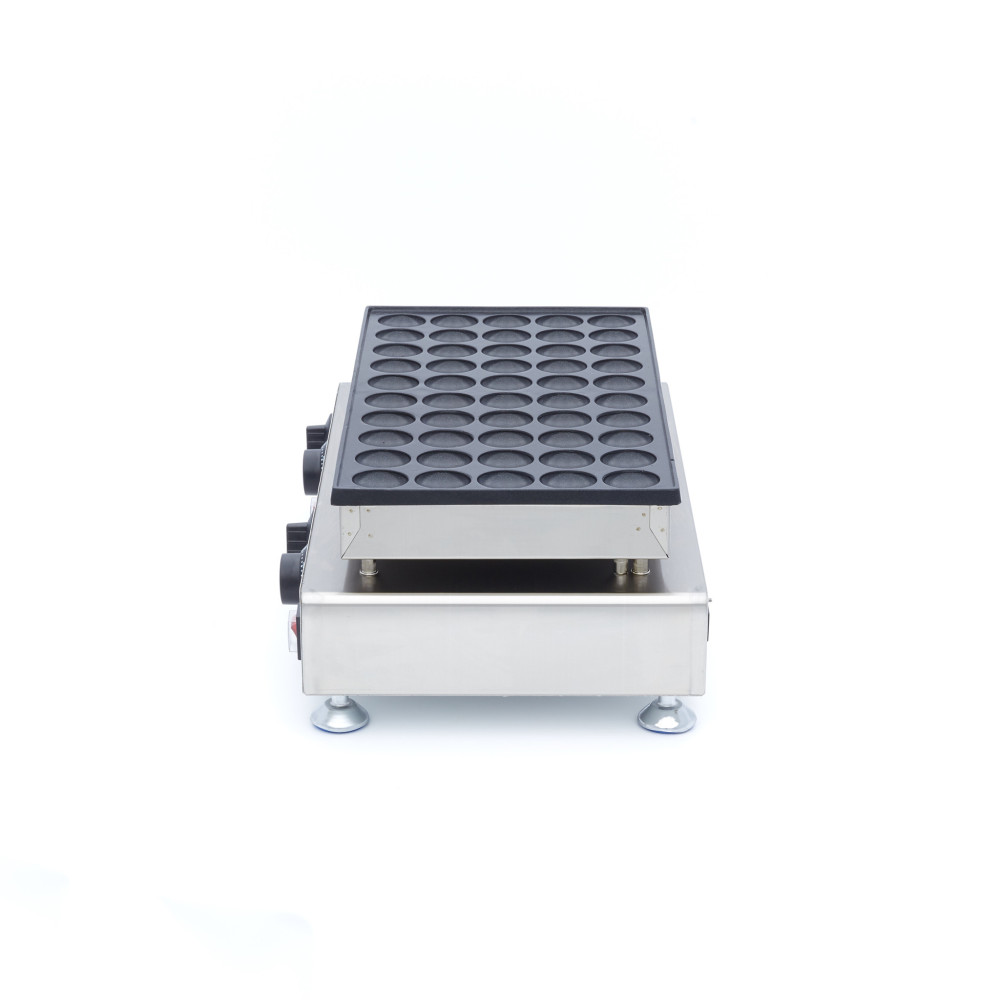S tímto elektrickým palačinkovačem připravíte během chvilky 50 chutných mini palačinek o průměru 4,3 cm. Tento mini palačinkovač má dvě topná tělesa s oddělenými knoflíky pro ovládání termostatu a časovače.Ideální palačinkovač pro trhy, veletrhy, ale i restaurace a jídelny.