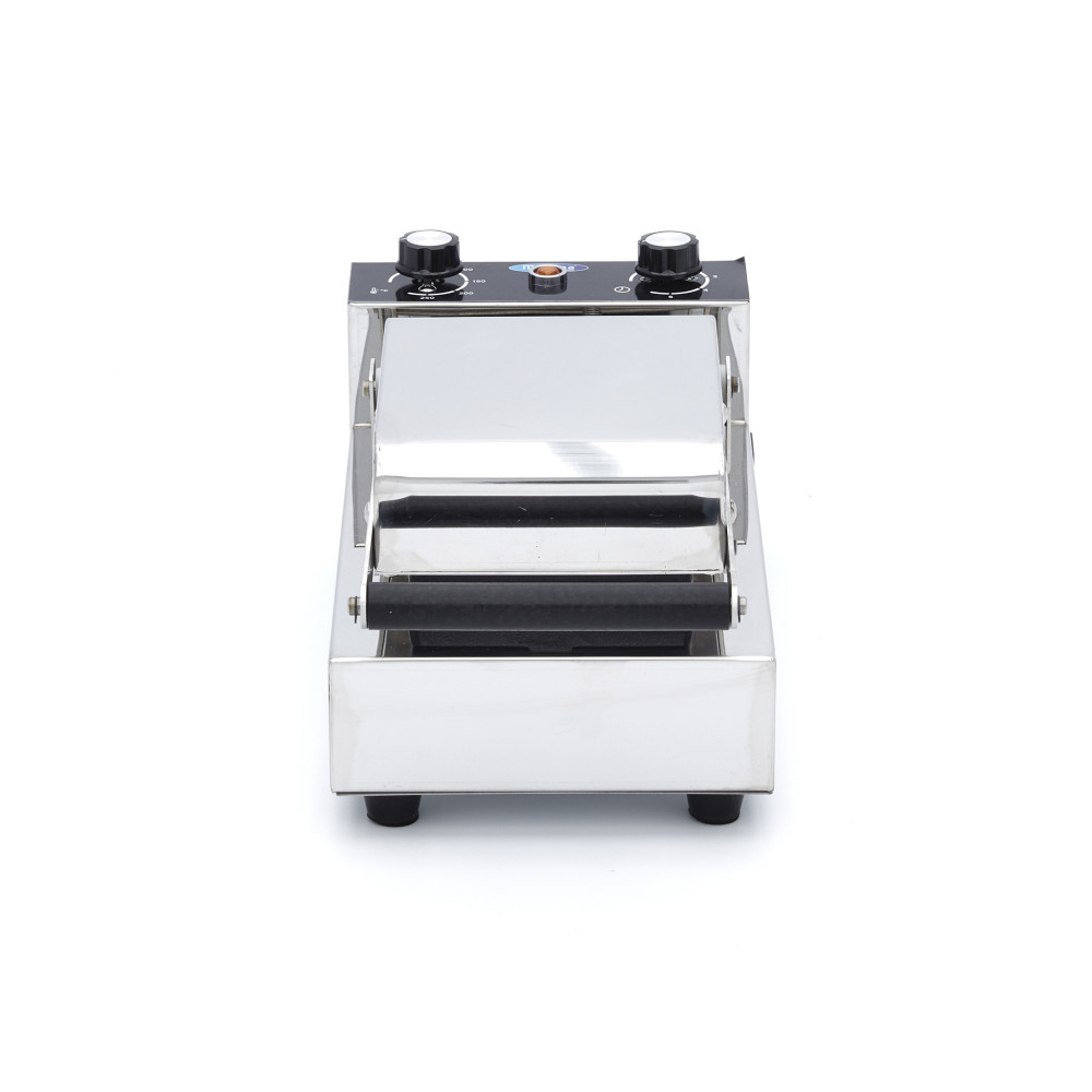 S tímto výrobníkem zmrzlinových panini si můžete připravit lahodné zmrzlinové panini, křupavou housku plněnou zmrzlinou. Má dva otočné knoflíky pro nastavení teploty a časovače. Gelato panini maker je vyroben z nerezového pouzdra s hliníkovou pečicí deskou s nepřilnavým povrchem. Ideální pro zmrzlinové salóny.