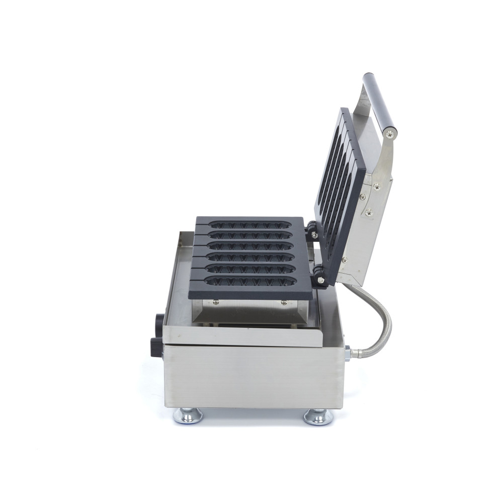 S tímto vaflovačem snadno a rychle připravíte šest žebrovaných kukuřičných párků najednou. Vaflovač má hliníkovou pečicí desku s nepřilnavým povrchem. Pečicí deska má kosočtvercový vzor a zářezy pro tyčinky. Vaflovač se snadno ovládá a je ideální pro každodenní použití.