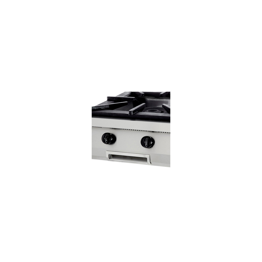 Tato profesionální varná deska je vhodná pro LPG nebo zemní plyn, který "ožije" díky praktickému piezoelektrickému zapalování. Je vybaven bezpečnostním ventilem s termočlánkem. Ten zajišťuje, že plynový ventil zůstane otevřený tak dlouho, dokud čidlo zaznamená teplo. Jakmile není žádný plamen, dojde k automatickému uzavření plynového ventilu, aby nedošlo k úniku plynu. K dispozici je další pojistka v podobě bezpečnostního termostatu.