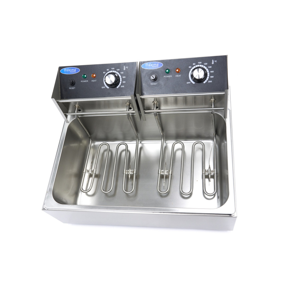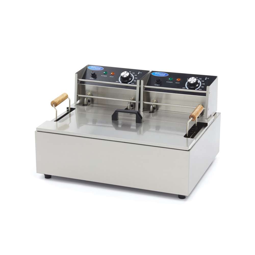 Pokud ve svém stravovacím zařízení pravidelně smažíte velké množství potravin, je tato profesionální fritéza s objemem 15 litrů ideální. Skládá se ze dvou samostatných topných těles a jednoho velkého fritovacího koše. Výhodou fritézy se dvěma topnými tělesy je, že nepotřebujete velký výkon. Nezáleží tedy na tom, v jaké kuchyni se nacházíte, fritézu stačí připojit do běžné elektrické zásuvky. Při zvedání fritovacího koše můžete použít žáruvzdorné rukojeti, které zabrání zranění, a dodávané víko zabrání rozstřiku oleje během používání. Gumové nožičky ve spodní části spotřebiče zajišťují jeho stabilitu a pevnost na většině povrchů.
