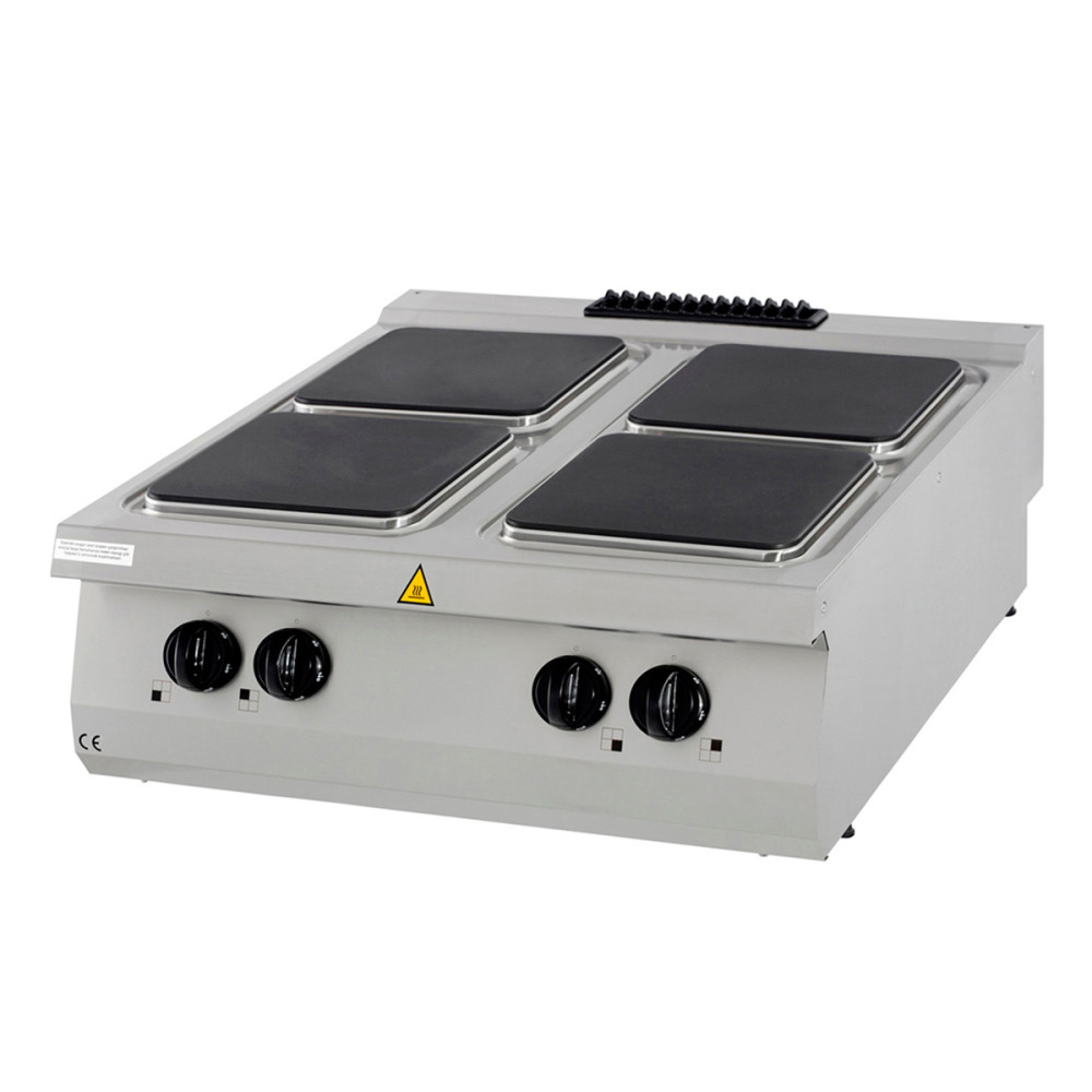 Velkou výhodou elektrického sporáku je hladký povrch čtyř hořáků, díky němuž se velmi snadno čistí. Totéž platí i pro kryt, který je vyroben z nerezové oceli. Rohy jsou zaoblené, takže se na nich nemohou hromadit nečistoty. Toto zařízení je vhodné pro použití v rámci varné linky a snadno si k němu můžete objednat podstavec, který je buď otevřený, nebo má dvoje dvířka.