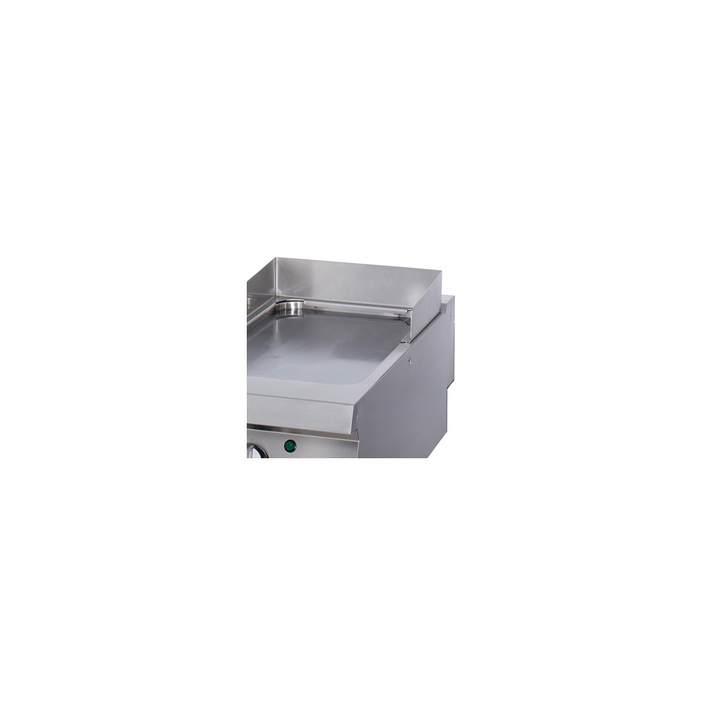 Tento vysoce kvalitní rošt byl vyroben speciálně pro použití v rámci varné linky. Díky použití pouze kvalitních materiálů je ideální pro každodenní intenzivní používání. Hladká grilovací deska byla vyrobena z 15 mm silné oceli a má elegantní chromovanou povrchovou úpravu. Pod ní se nachází velká odkapávací miska o objemu 1,5 litru, která pomáhá shromažďovat tuk během vaření a udržovat vše v čistotě a pořádku. Pro čištění ji lze snadno vyjmout.