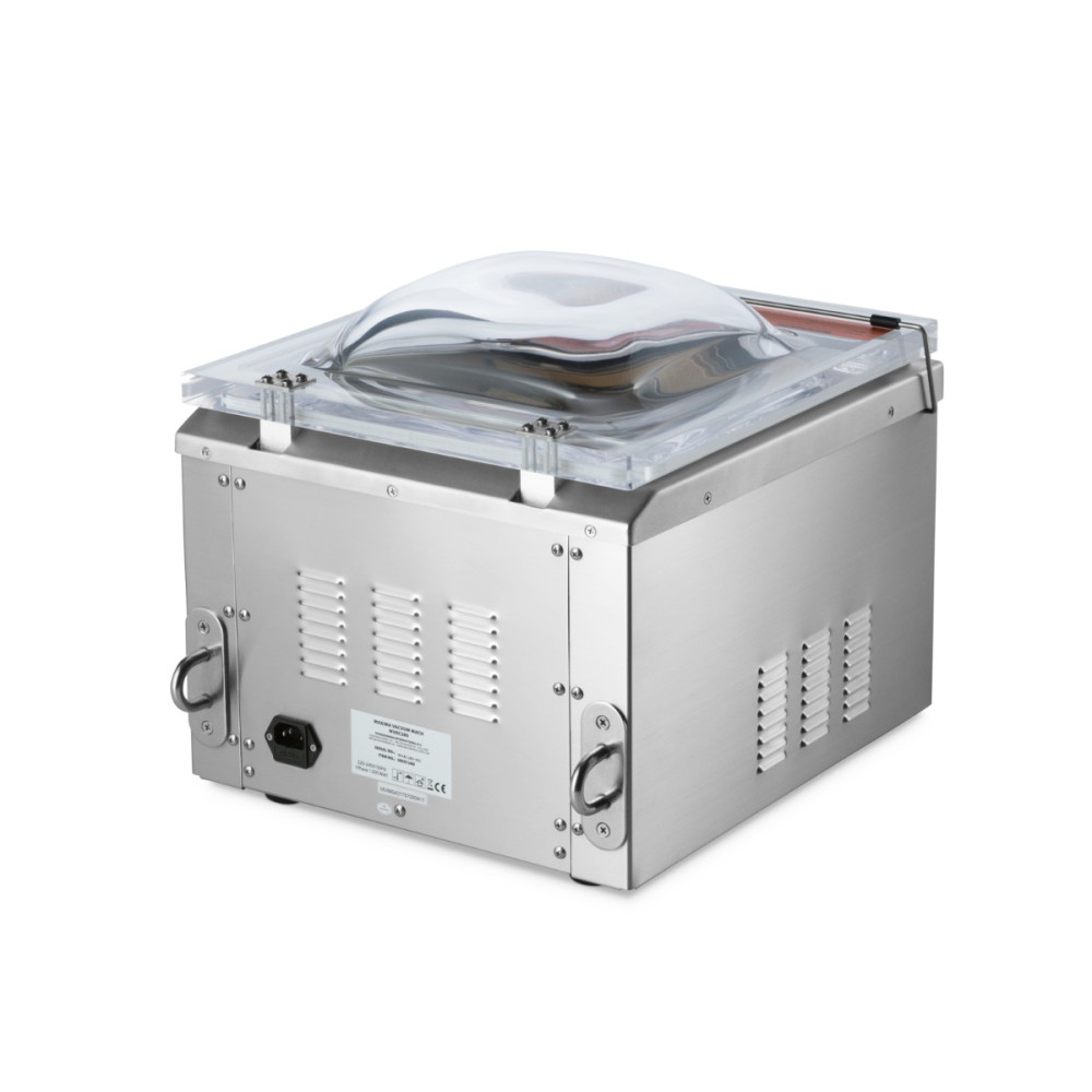 Tento balicí stroj je vhodný pro skladování potravin ve vakuu. Rychle vyrobí praktické malé balíčky, které se dobře uchovávají v chladničce nebo mrazničce. S vakuovacími sáčky správné velikosti, které si můžete objednat zvlášť, můžete balit také tvrdé sýry, maso a ryby, ale i ovoce a zeleninu. Vakuové balení zajistí nejen delší trvanlivost vašich výrobků, ale také to, že po zmrazení budou vypadat čerstvěji. Díky kompaktnímu stolnímu modelu nepřekáží tento vakuový balicí stroj v profesionální kuchyni a můžete jej také snadno uskladnit, když potřebujete další místo.
