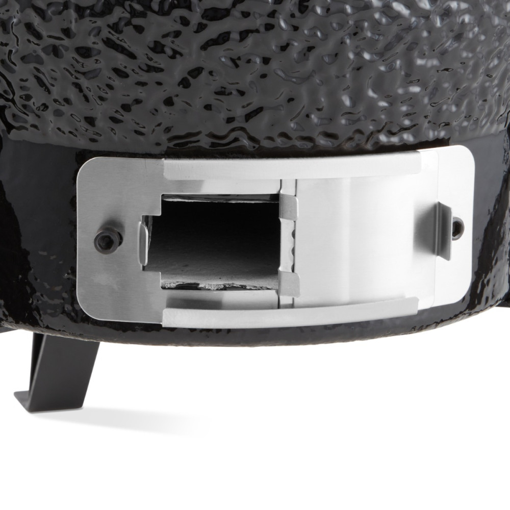 Nastavitelný přívod vzduchu ve spodní části a výstup vzduchu ve víku zajišťují optimální cirkulaci vzduchu. Pomocí něj můžete nastavit teplotu pokrmů. Výhodou jsou také nastavitelné grilovací desky, které vám umožní umístit pokrmy do ideální výšky nad oheň. Stěna a ohniště jsou keramické, což zajišťuje, že kamado nebude ovlivněno vysokými teplotami nebo teplotními rozdíly.