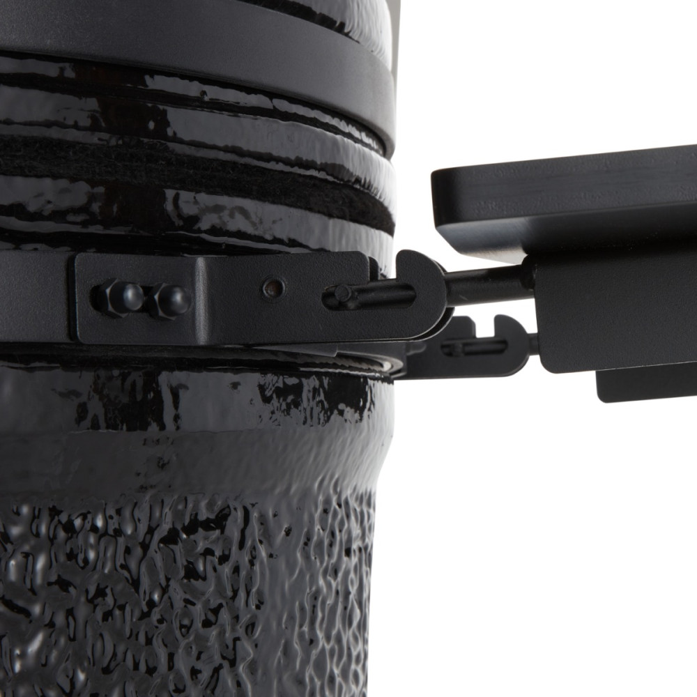 Nastavitelný přívod vzduchu ve spodní části a výstup vzduchu ve víku zajišťují optimální cirkulaci vzduchu. Můžete jím regulovat teplotu pokrmů. Výhodné jsou také nastavitelné grilovací desky, které umožňují umístit pokrmy do ideální výšky nad oheň. Stěny a ohnivá mísa jsou keramické a zajišťují, že gril Kamado nebude ovlivněn vysokými teplotami ani teplotními rozdíly.