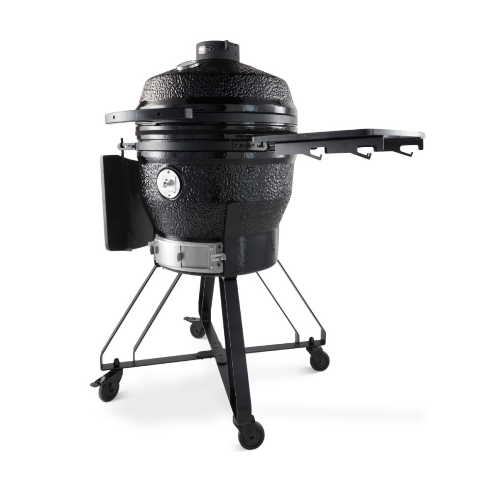 Nastavitelný přívod vzduchu ve spodní části a výstup vzduchu ve víku zajišťují optimální cirkulaci vzduchu. Pomocí něj můžete upravovat teplotu pokrmů. Výhodné jsou také nastavitelné grilovací desky, které vám umožní umístit pokrmy do ideální výšky nad oheň. Stěny a ohniště jsou keramické a zajišťují, že kamado nebude ovlivněno vysokými teplotami ani teplotními rozdíly.