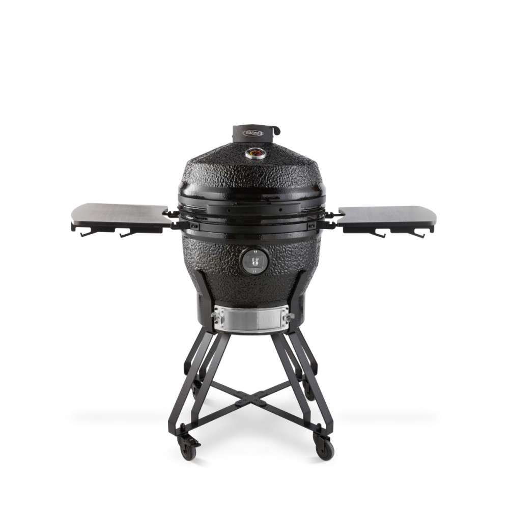 S tímto prémiovým grilem Kamado BBQ o průměru 49 cm můžete grilovat, udit, péct a vařit v páře nejrůznější pokrmy. Díky jeho robustnímu materiálu ho můžete bez obav nechat i venku. Ocelové části jsou opatřeny práškovou barvou a stěny jsou vyrobeny z keramiky. Díky tomu odolává vysokým teplotám a velmi dobře drží teplo, čímž udržuje stálou teplotu.