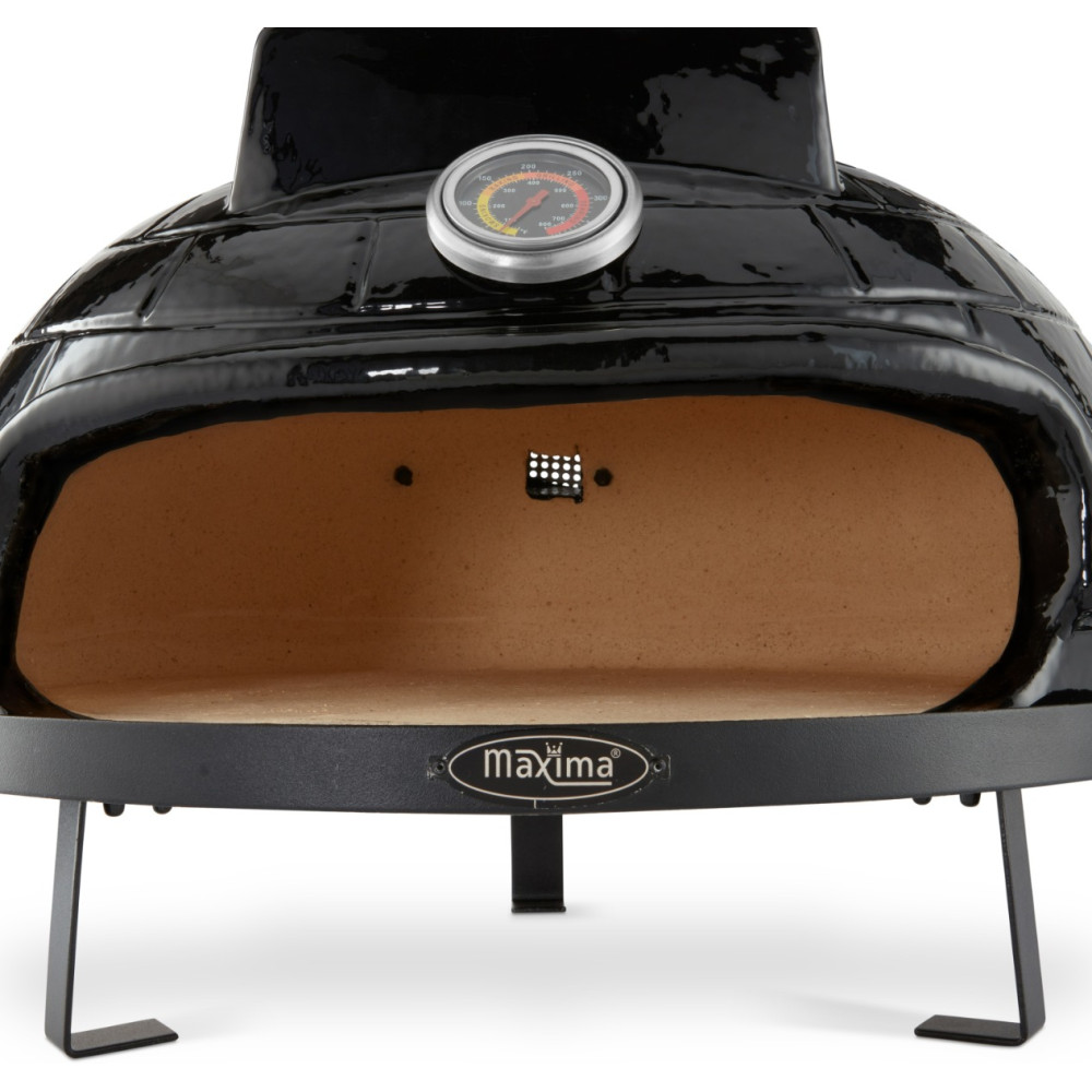 S touto keramickou černou pecí na pizzu o průměru 53 cm si můžete připravit tu nejlahodnější pizzu. Keramický kryt je odolný vůči změnám teploty a je standardně dodáván s kamenem na pizzu. Základna je vyrobena z oceli s práškovým nástřikem a rukojeti jsou z bambusu.